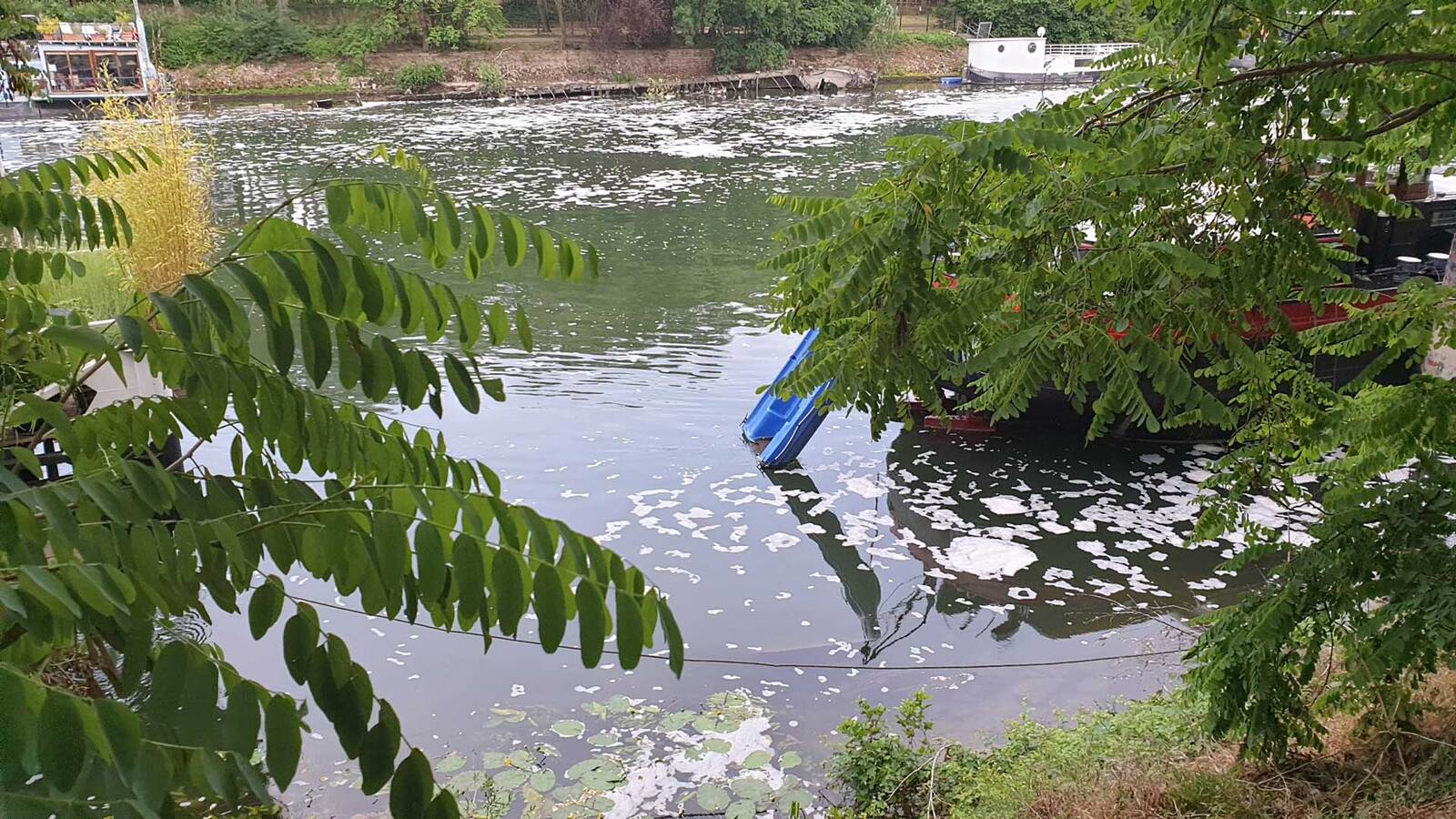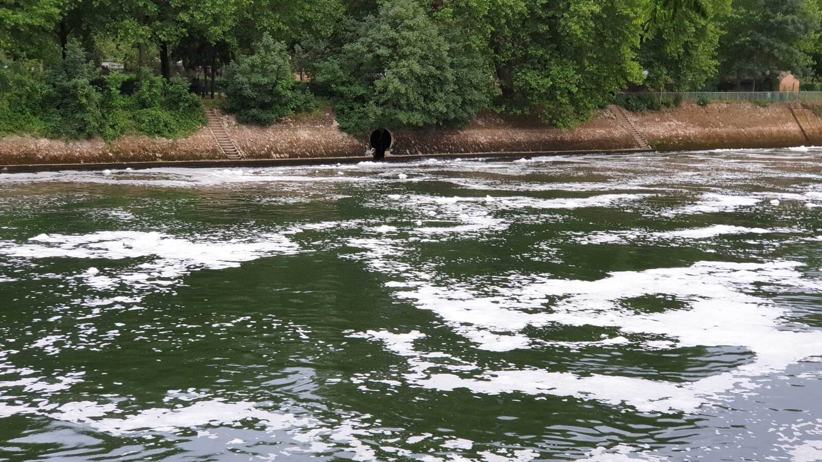 Déversement récurent de substances polluantes avec une forte odeur de détergents qui moussent à la surface de l'eau de la Seine.