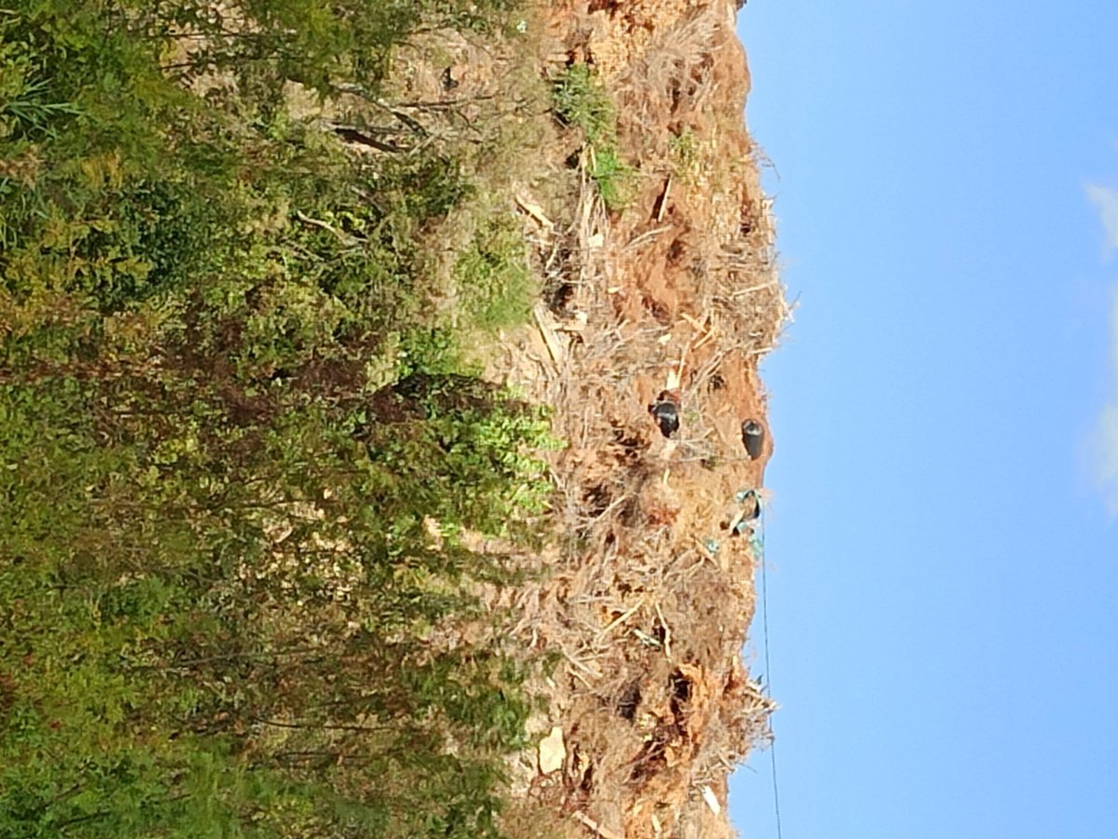 Décharge sauvage de déchets à proximité d'un cours d'eau.