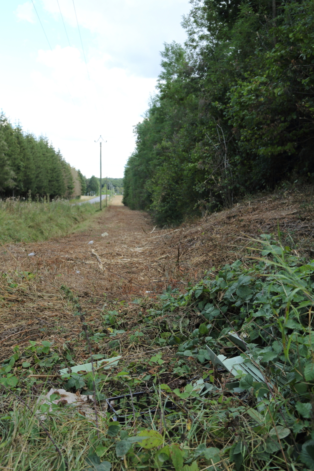 Cette chaise, déjà été remarquée le 01/07, a été broyée par lors du passage des engins qui ont depuis traité une bande d'environ 10 m de large sur 200m de long.