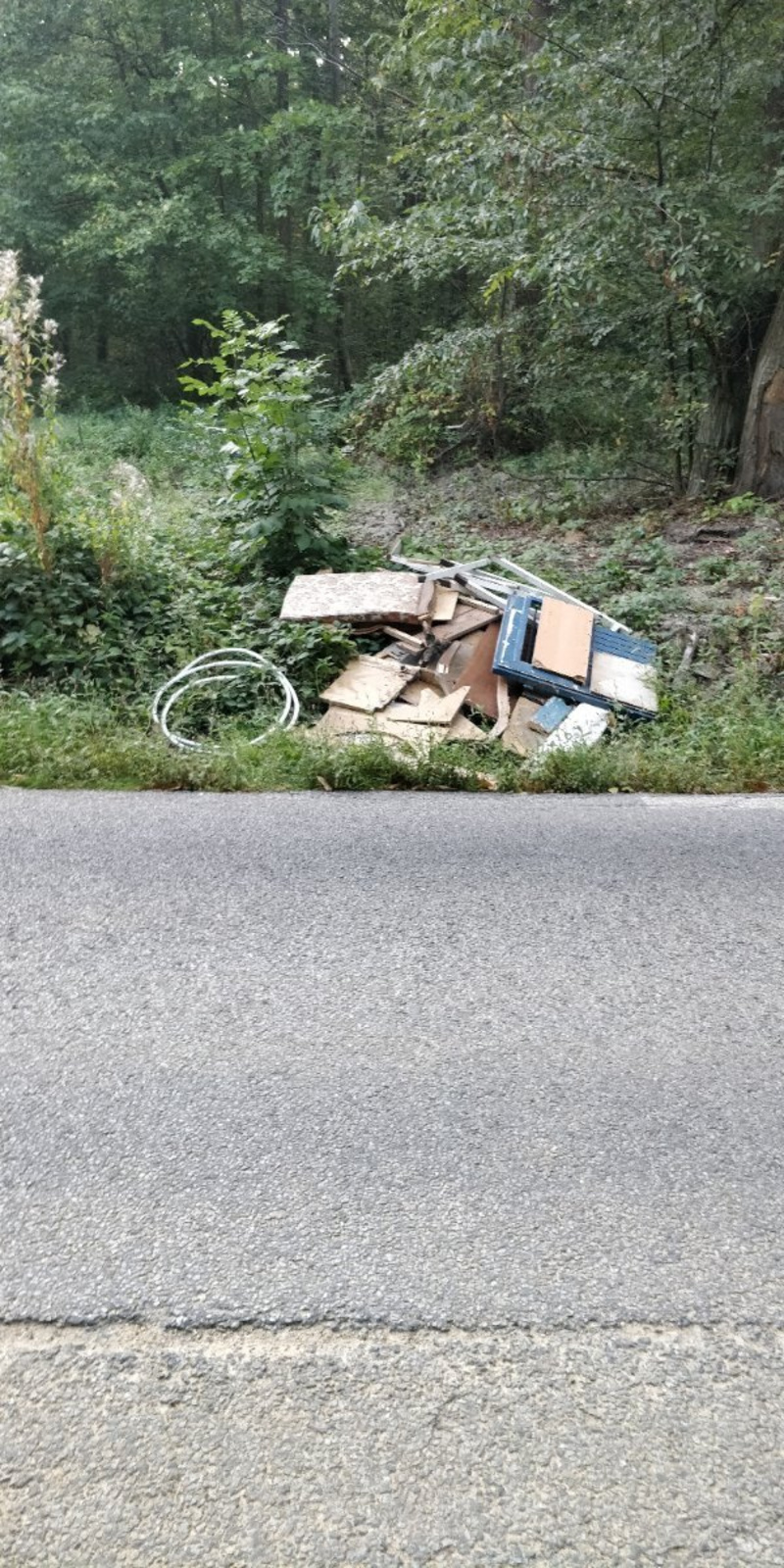 Dépôt illégal de déchets de chantier (planches et tissus divers) au cœur de la forêt domaniale de Fausses-Reposes.