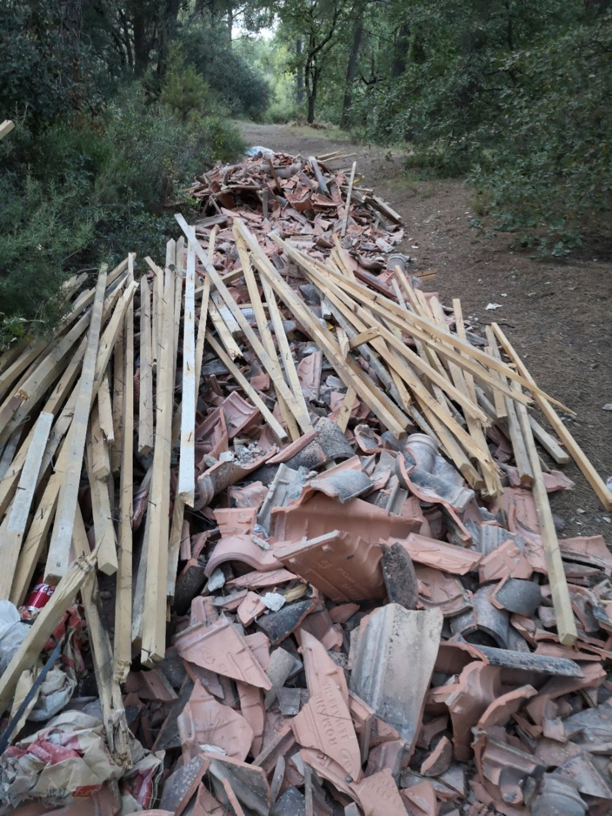 Déchets de chantier déposés en pleine nature à 100 mètres de la déchetterie.