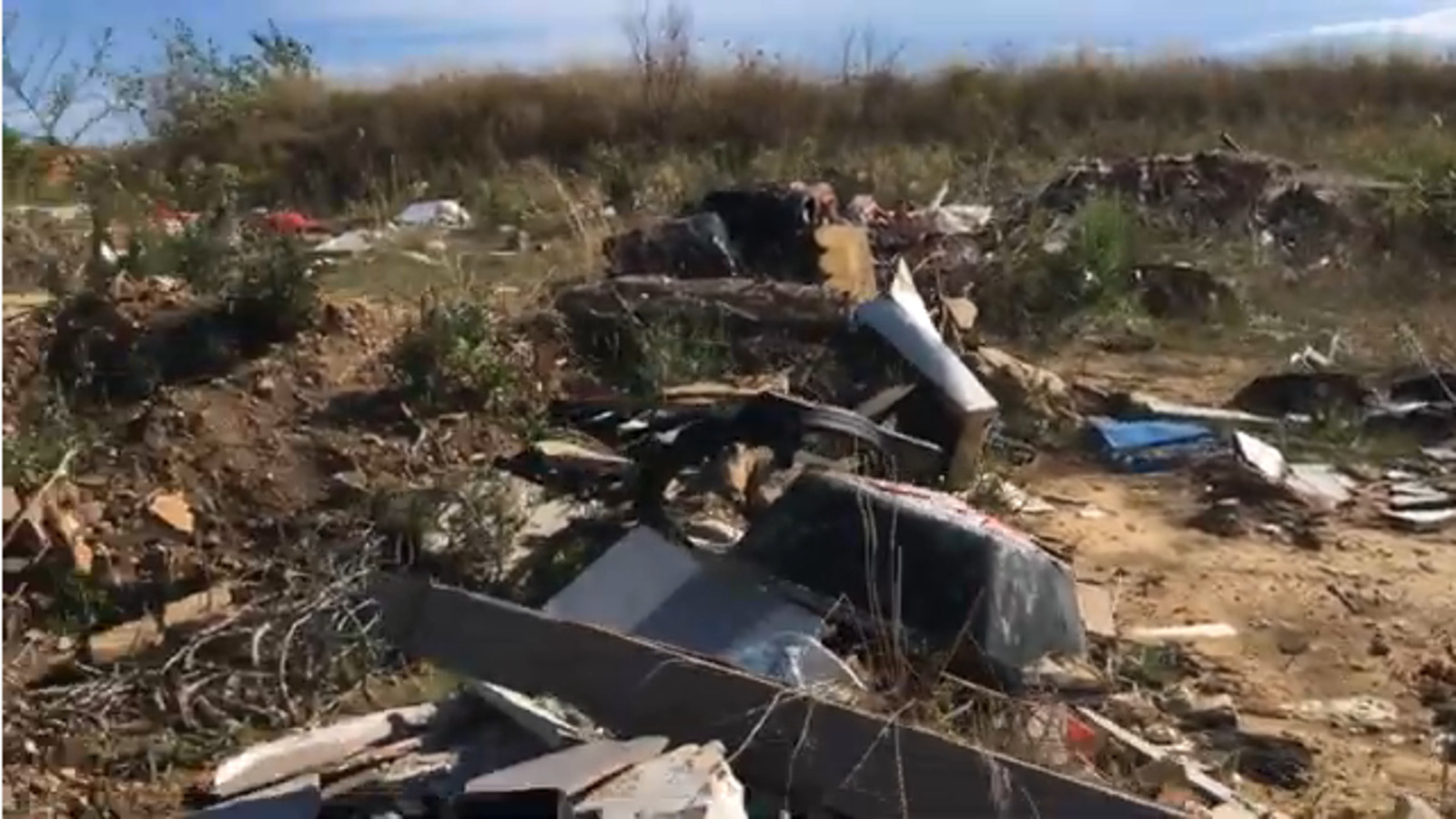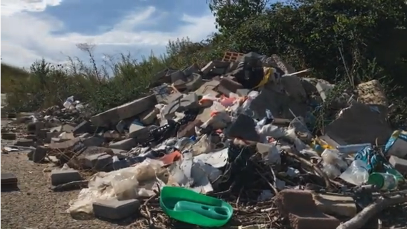 Important dépôt sauvage de déchets dans une friche en bord de route sur le PAE de Mazeran à Béziers.