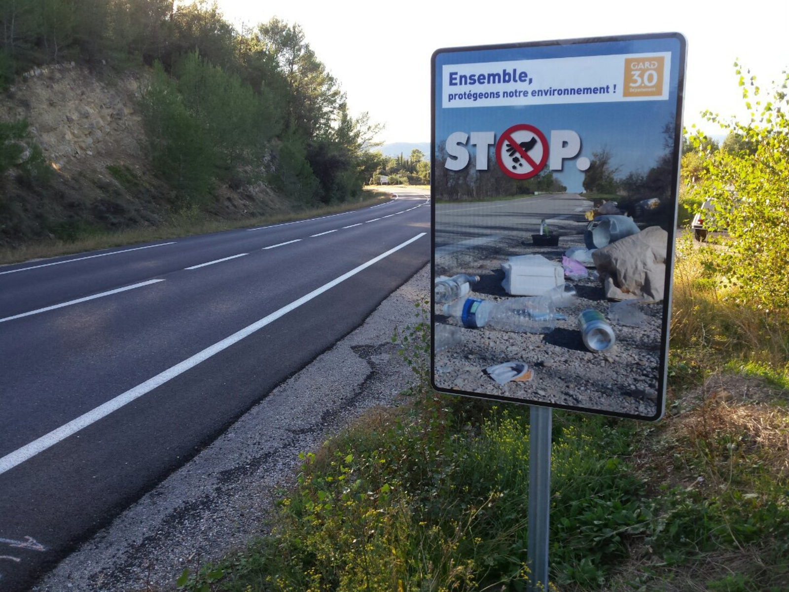 Mise en place de panneaux de sensibilisation au jet de déchets le long des routes départementales.