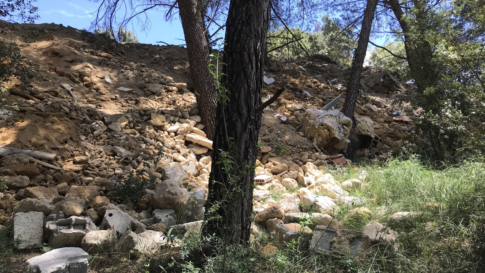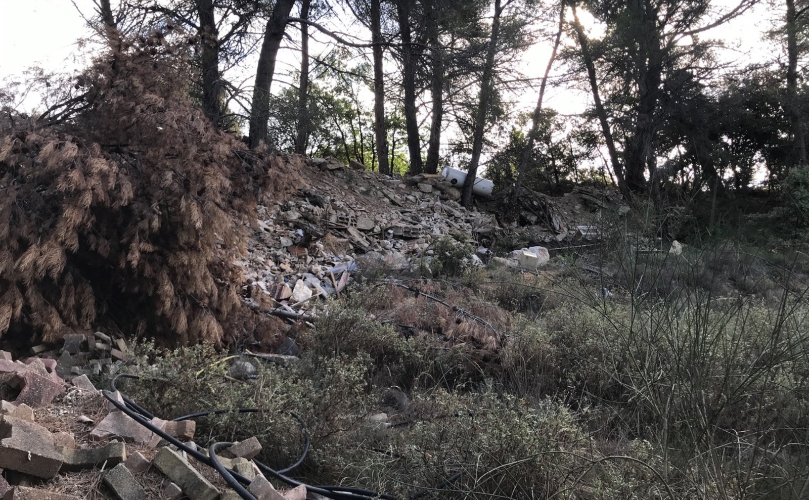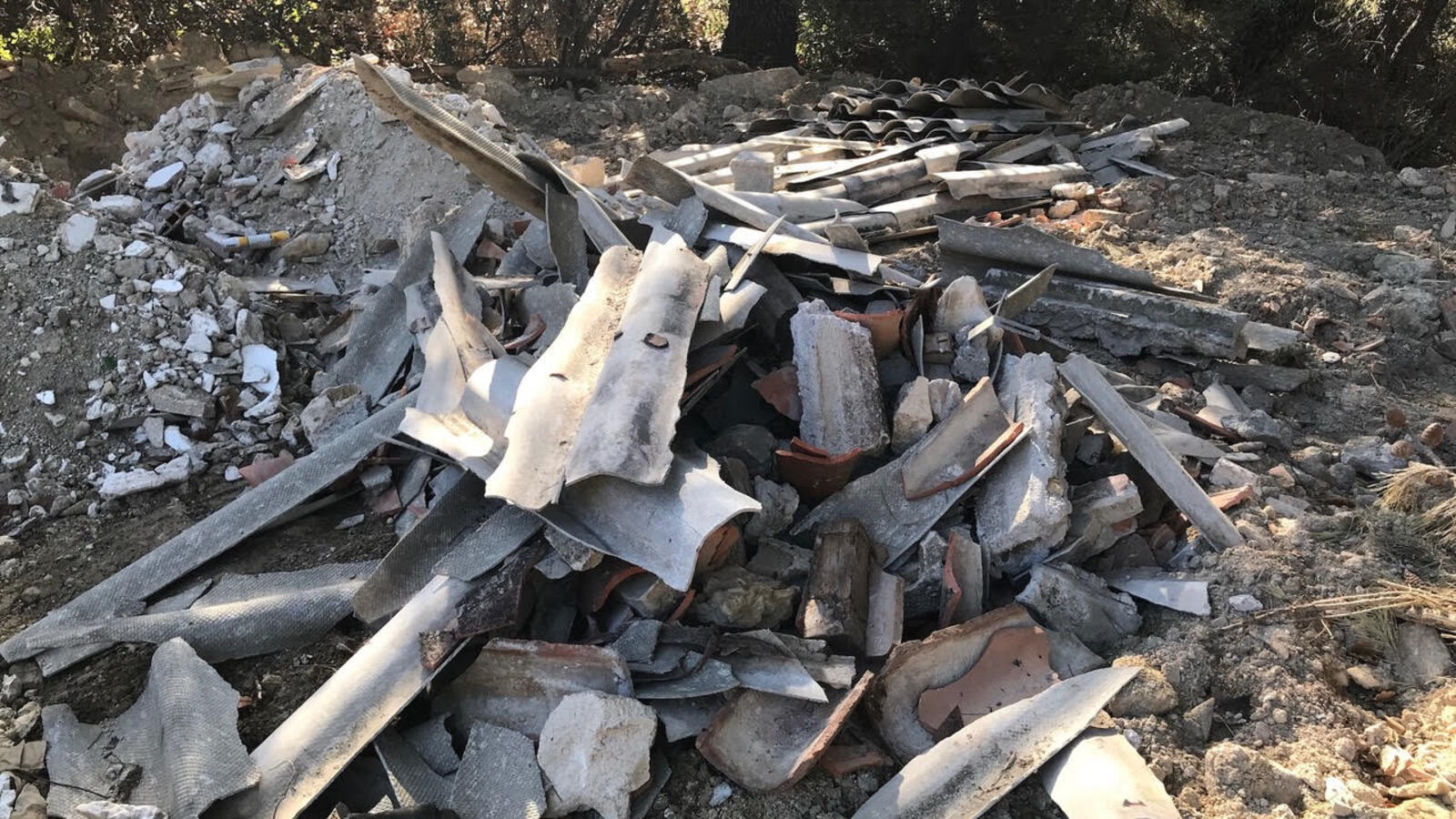 stockage de gravats et de matériaux déclassés sur un terrain privé.