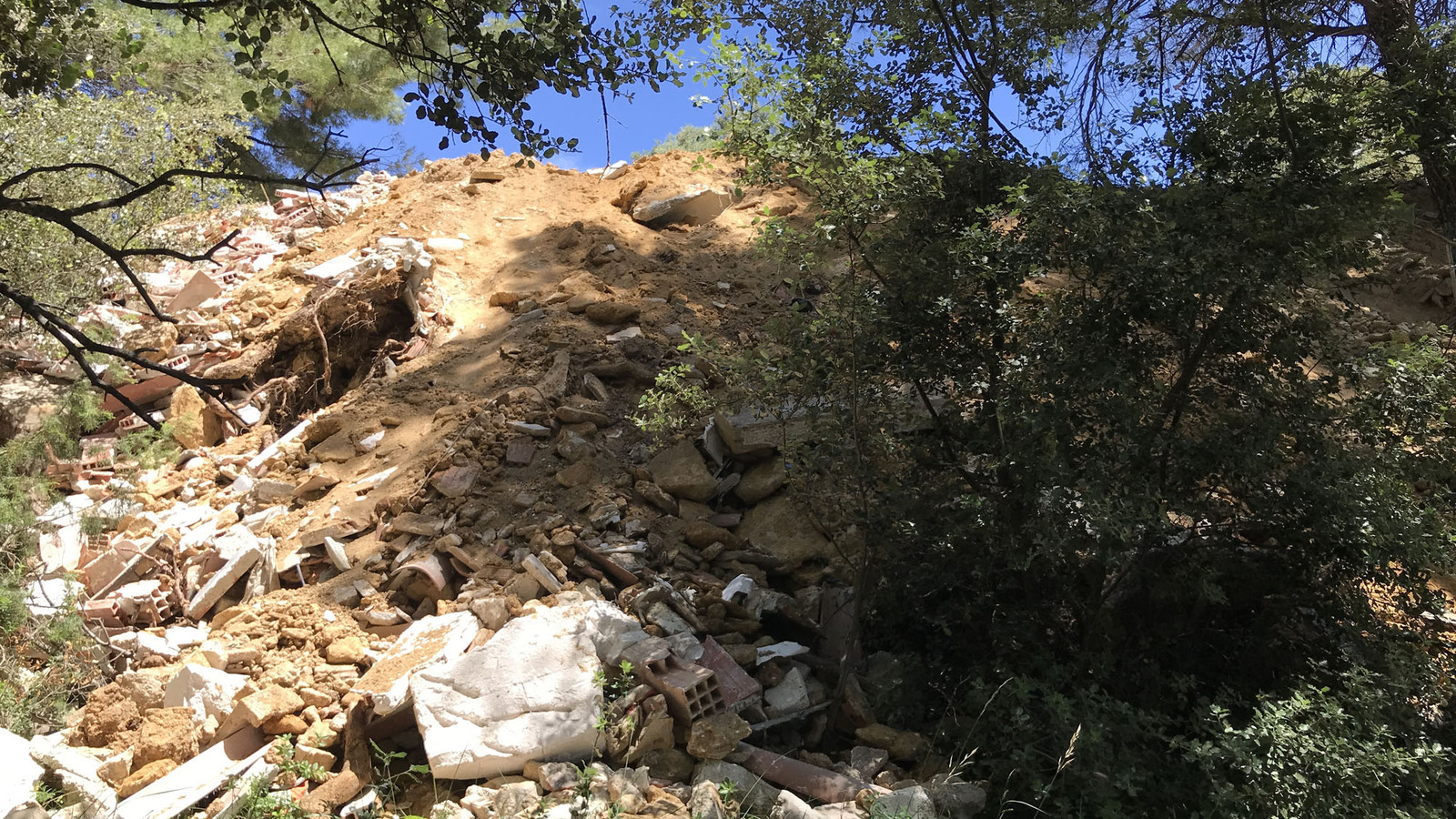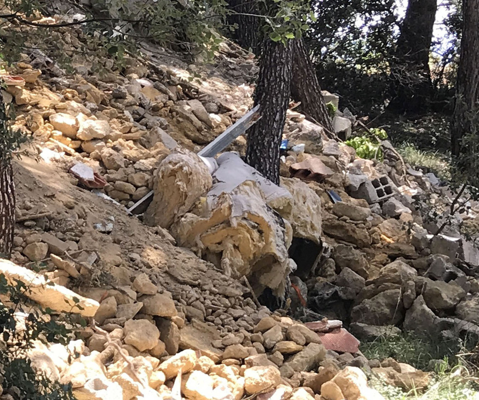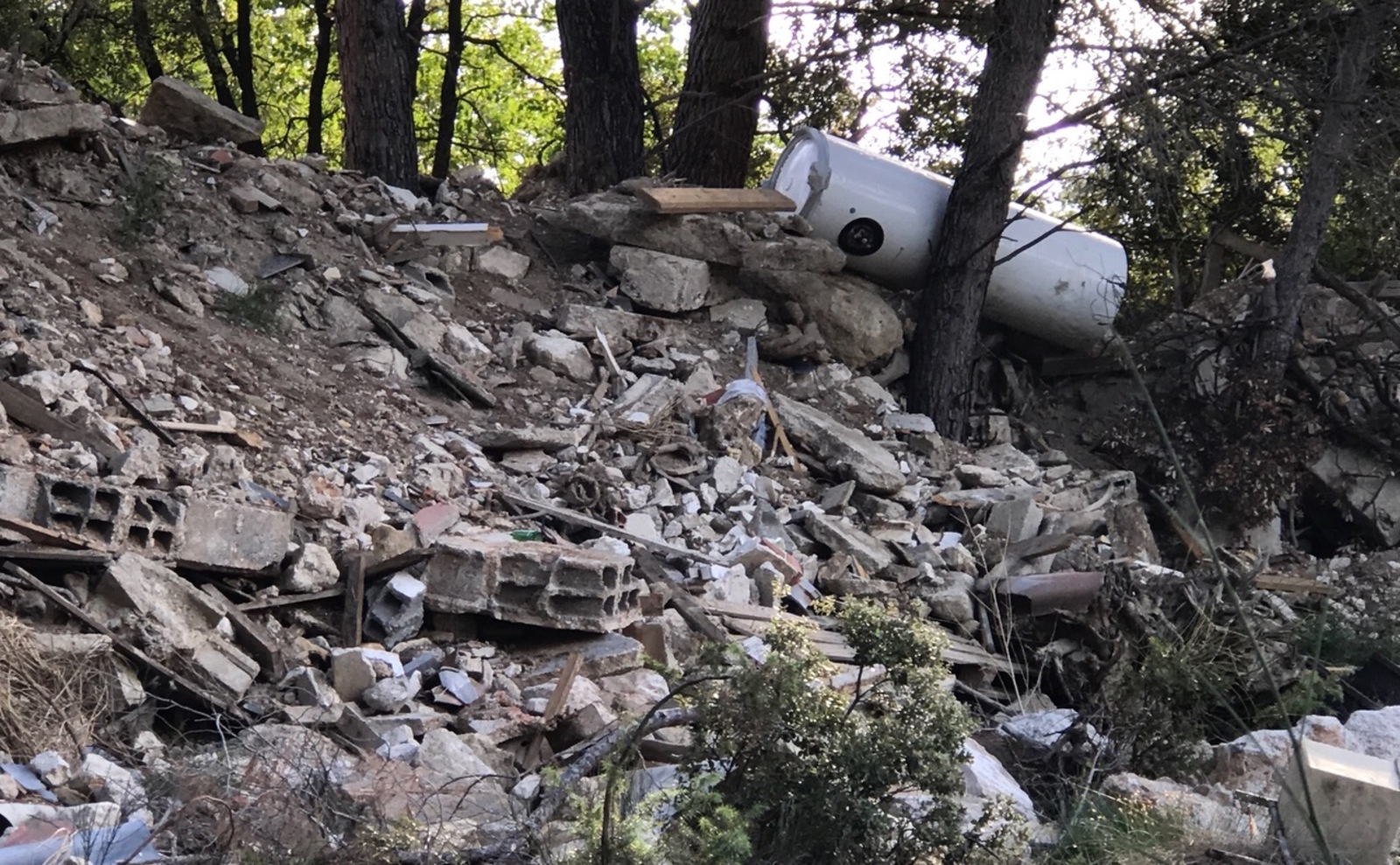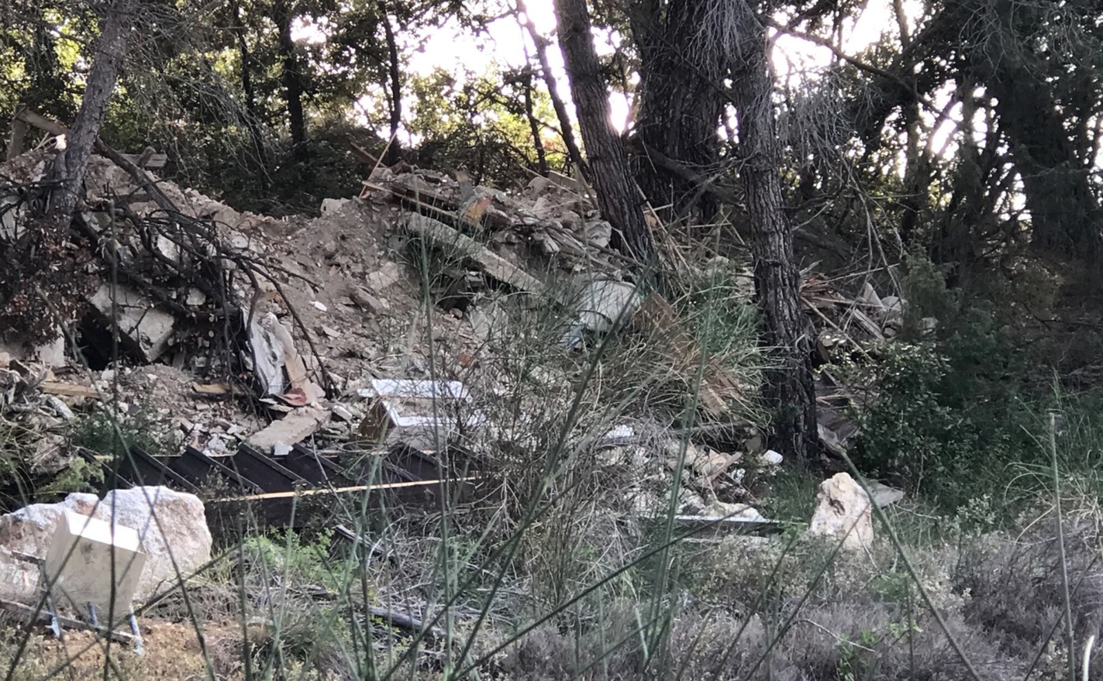 stockage de gravats et de matériaux déclassés sur un terrain privé.
