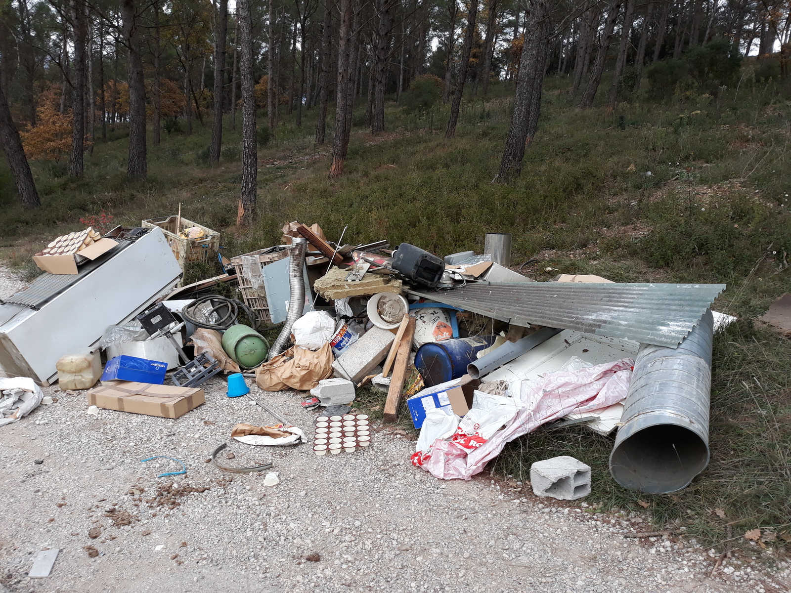 Dépôt sauvage sur un bord de route censée être fermée à la circulation
