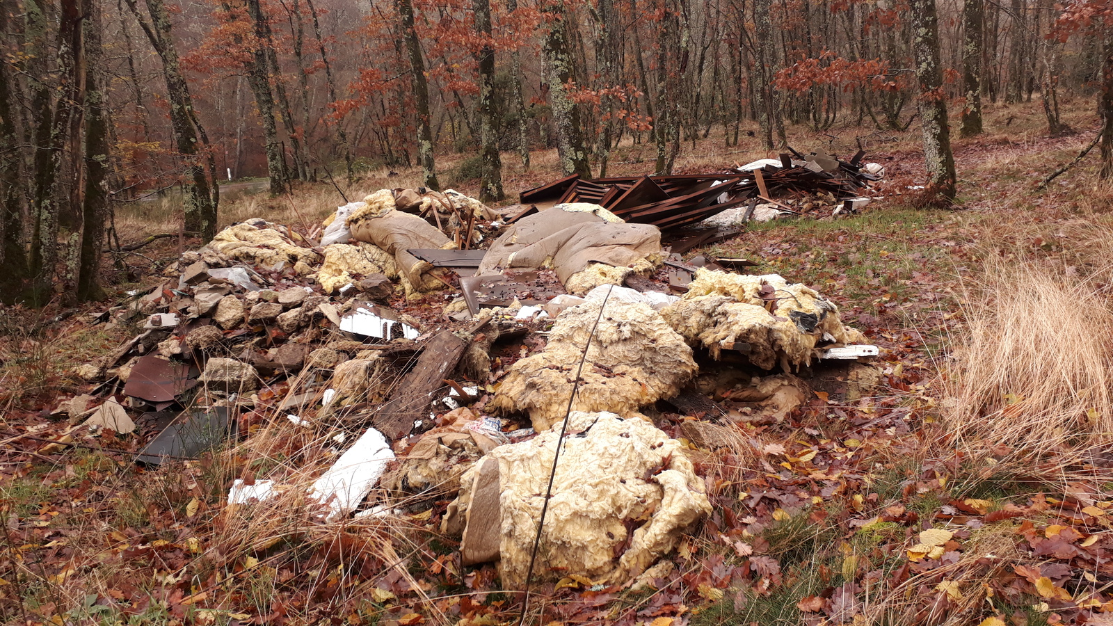 Une décharge sauvage de matériaux en pleine forêt !