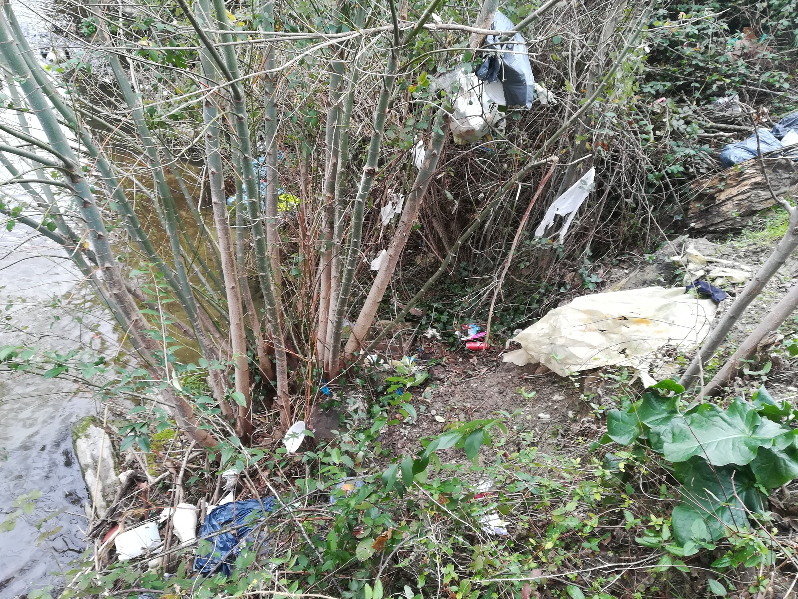 Deux dépôts de déchets le long des berges de l'Auzon, l'un derrière le boulodrome, l'autre au niveau de la cascade peu après en aval.