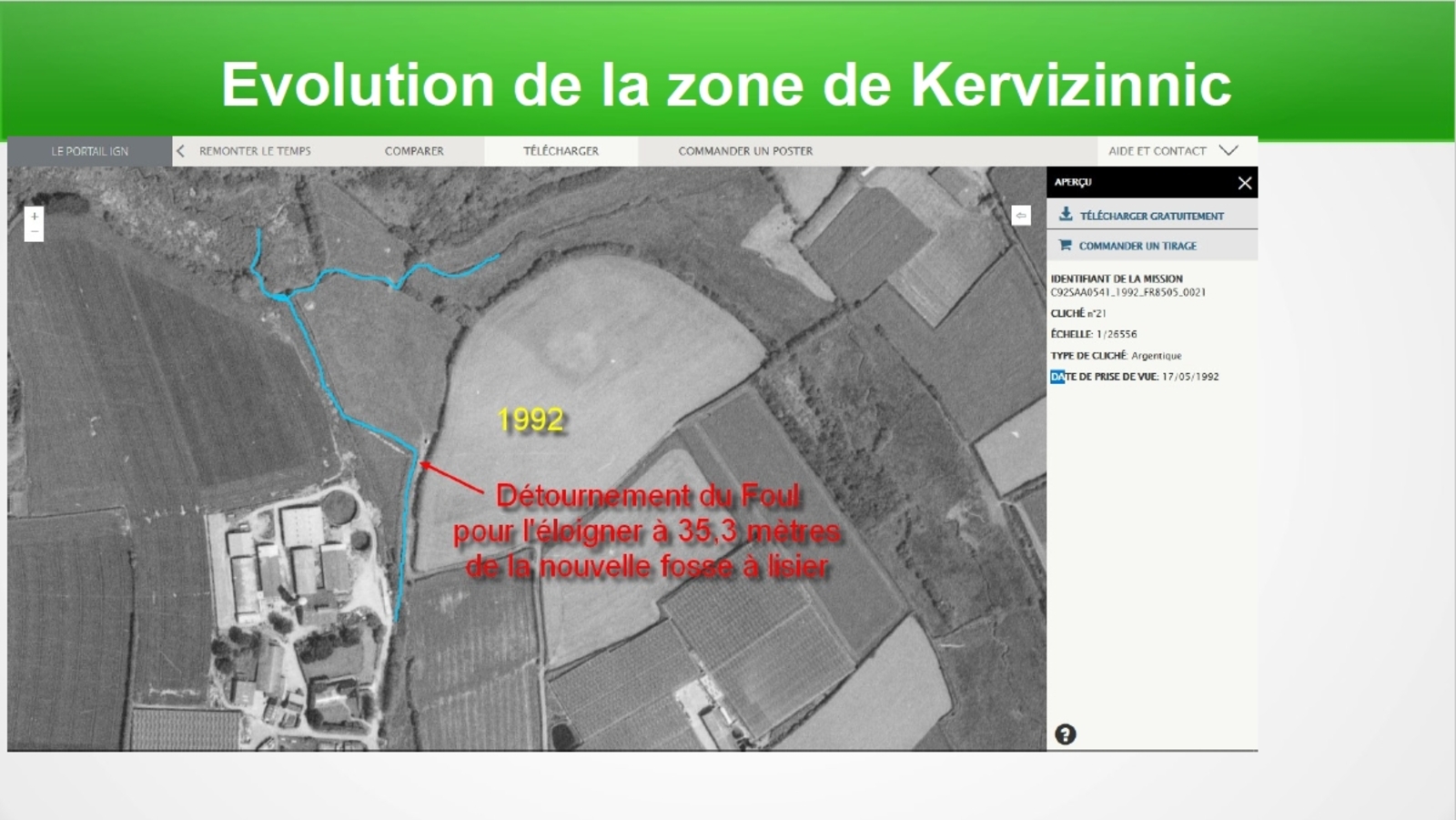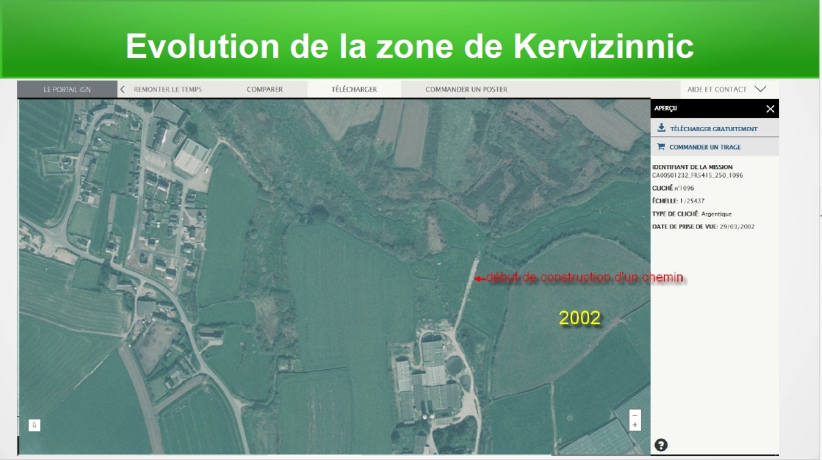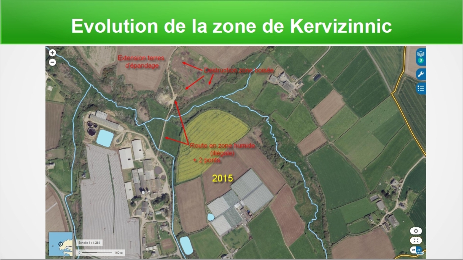 Réalisation entre 2005 et 2009 (évaluation faite grâce à géoportail "remonter le temps") d'un chemin surélevé pour relier deux de ses sites de production. (Kervizinnic et Kerincuff.