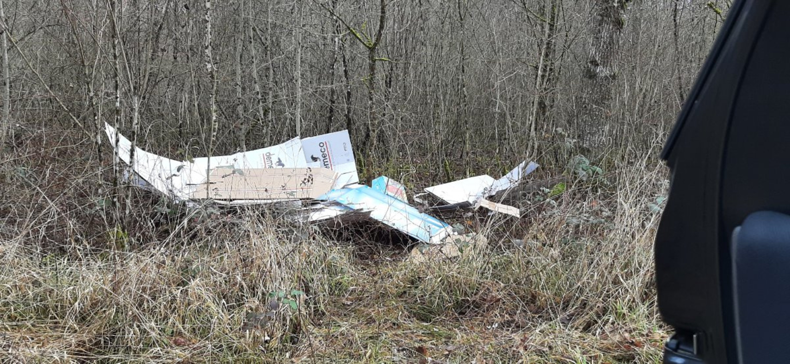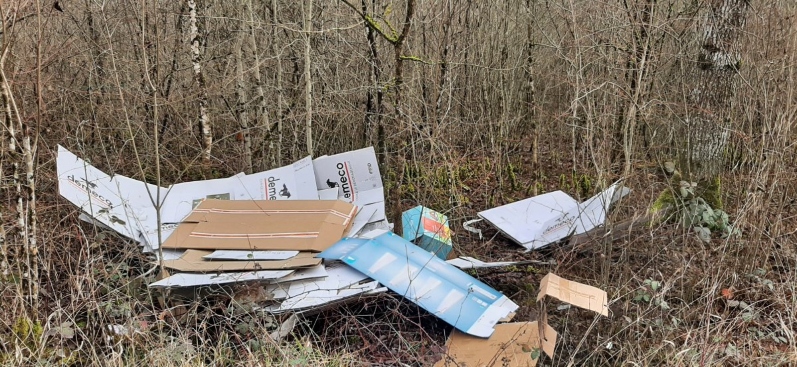 Décharge sauvage en bord de chemin (cartons + polystyrène).