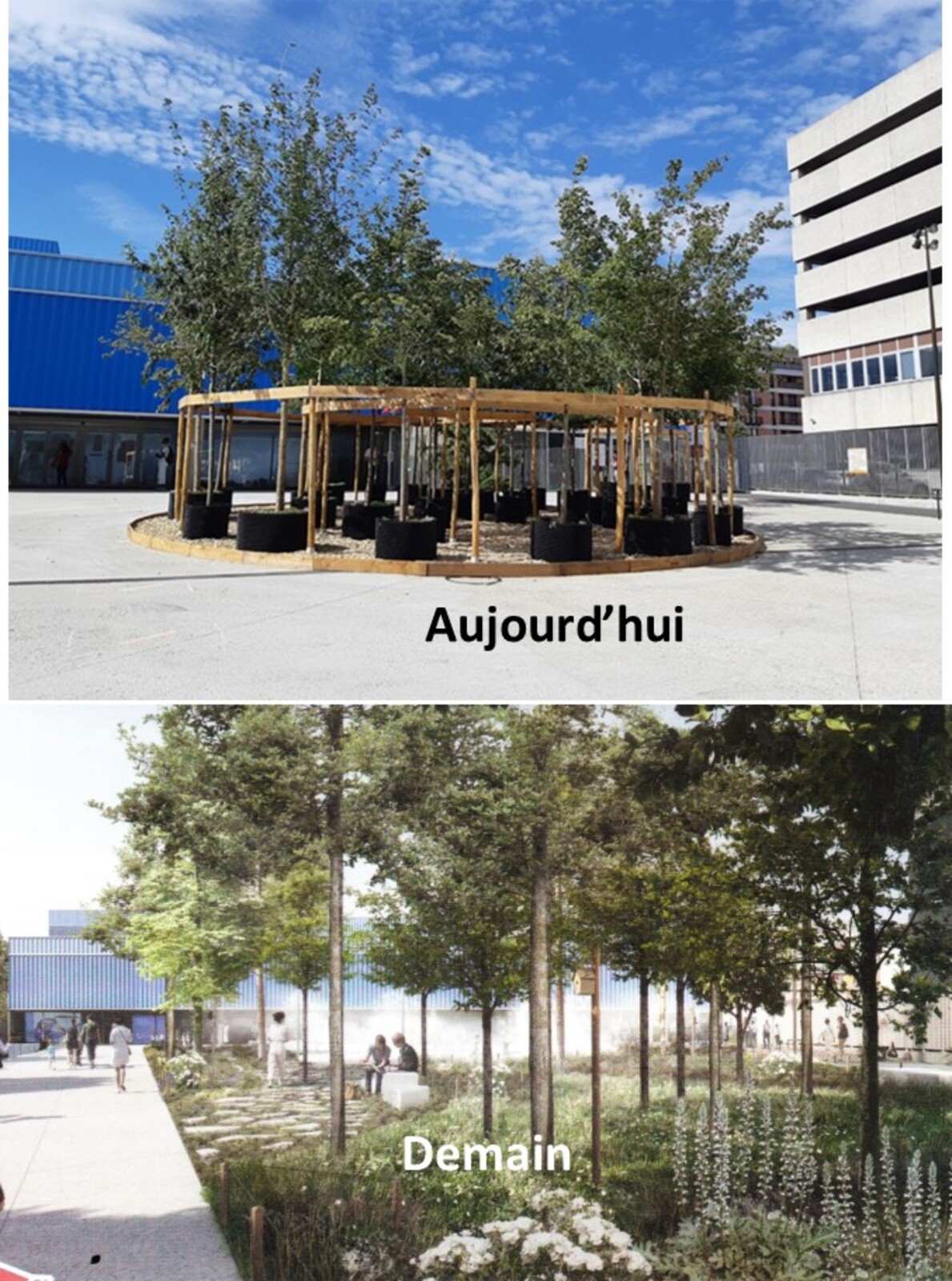 Le parvis de l’école du numérique bénéficie d’un aménagement ambitieux : 55 arbres de haute tige vont être plantés en pleine terre, entourés de vivaces et de graminées. L’objectif de cet aménagement est à la fois d’apporter de la fraicheur dans un milieu urbain dense et d’améliorer le cadre de vie en installant de la nature en ville.