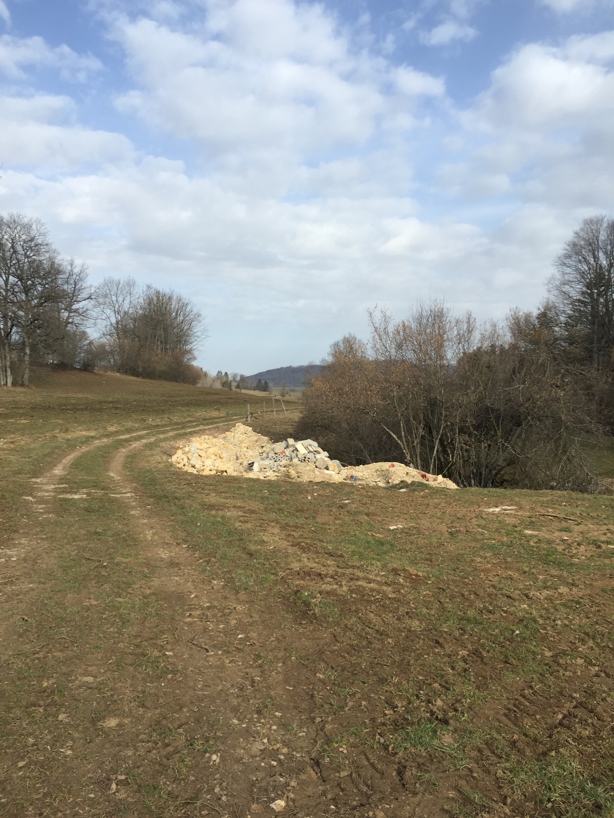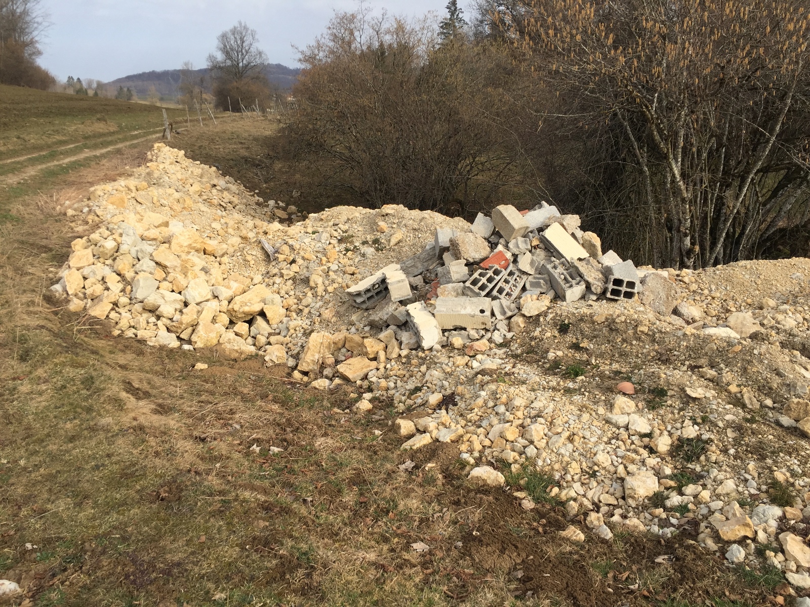 dépôt de gravas de construction en vue de combler une doline.
