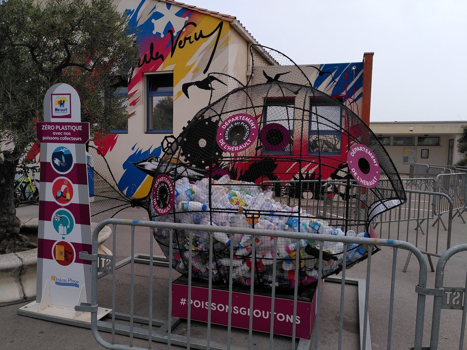 Et dans la cours de l'école, trône le poisson glouton, mis à disposition par le département de l'Hérault, pour sensibiliser à la pollution de la mer par les déchets plastiques.