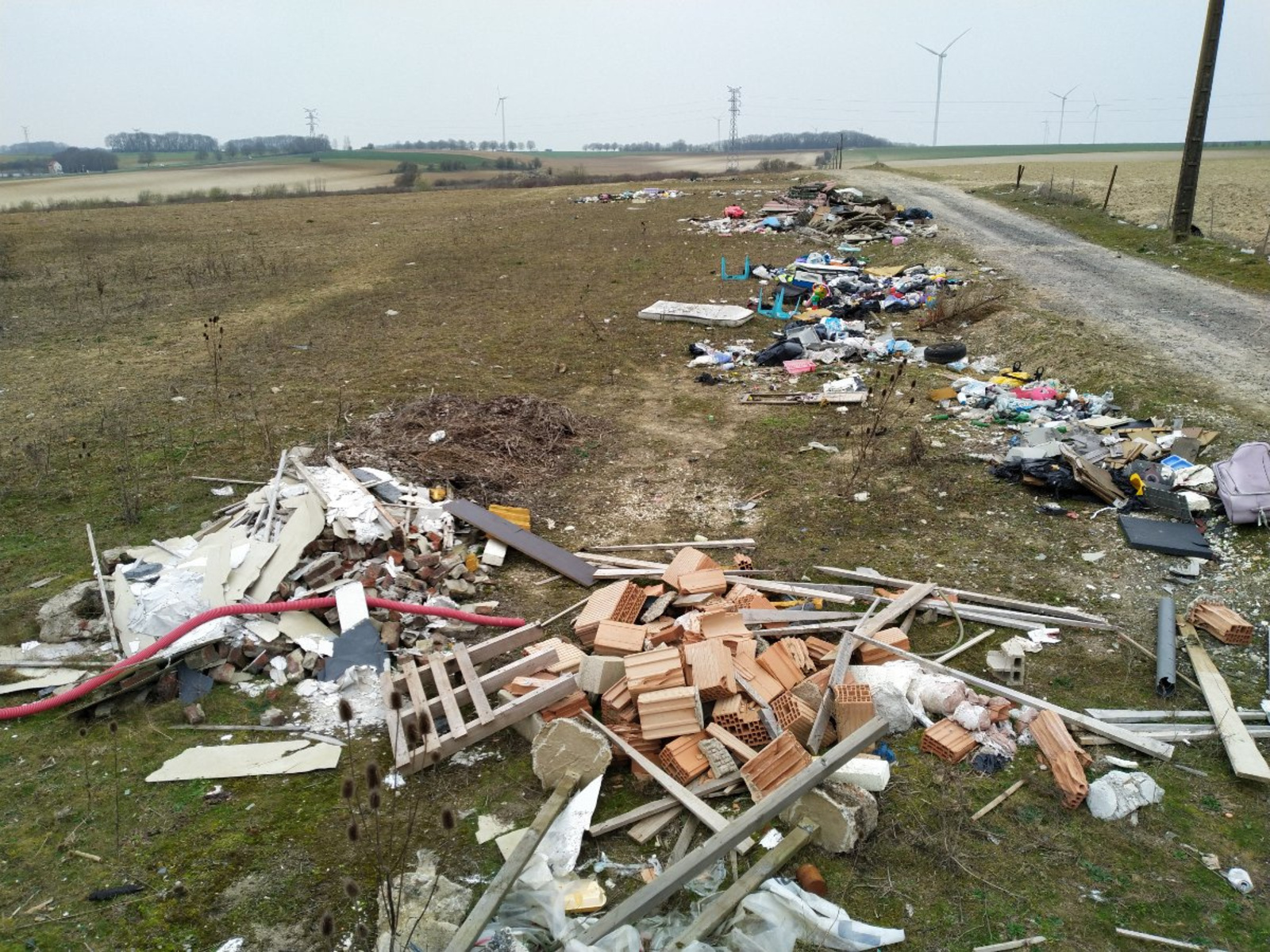 Décharge sauvage et dépôts de déchets.