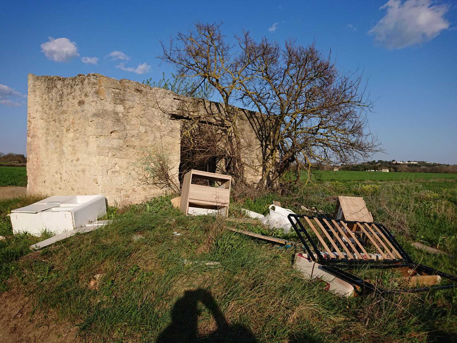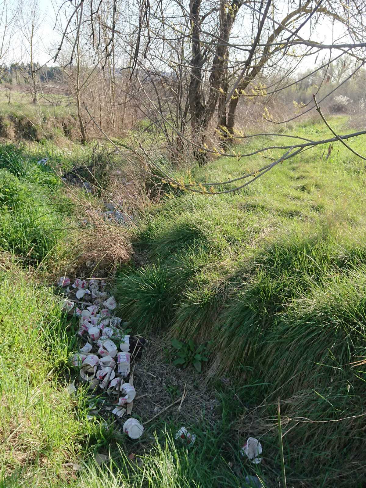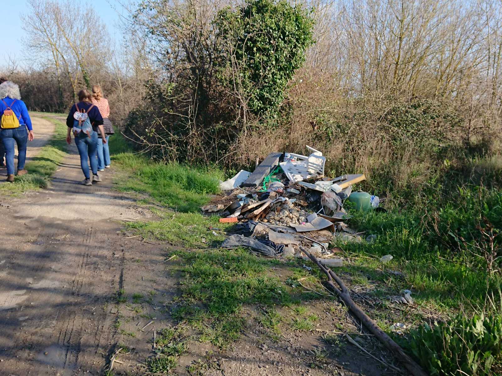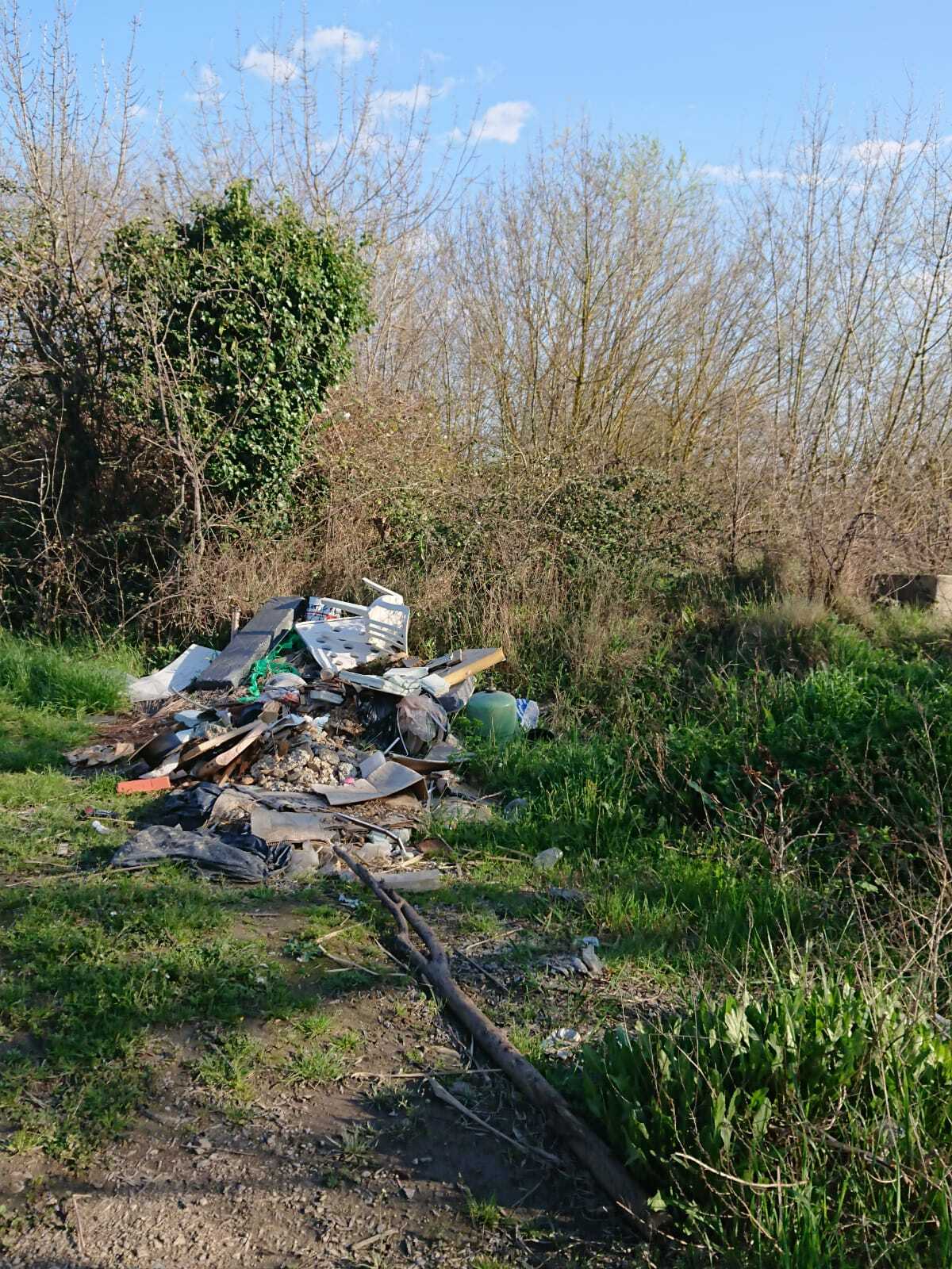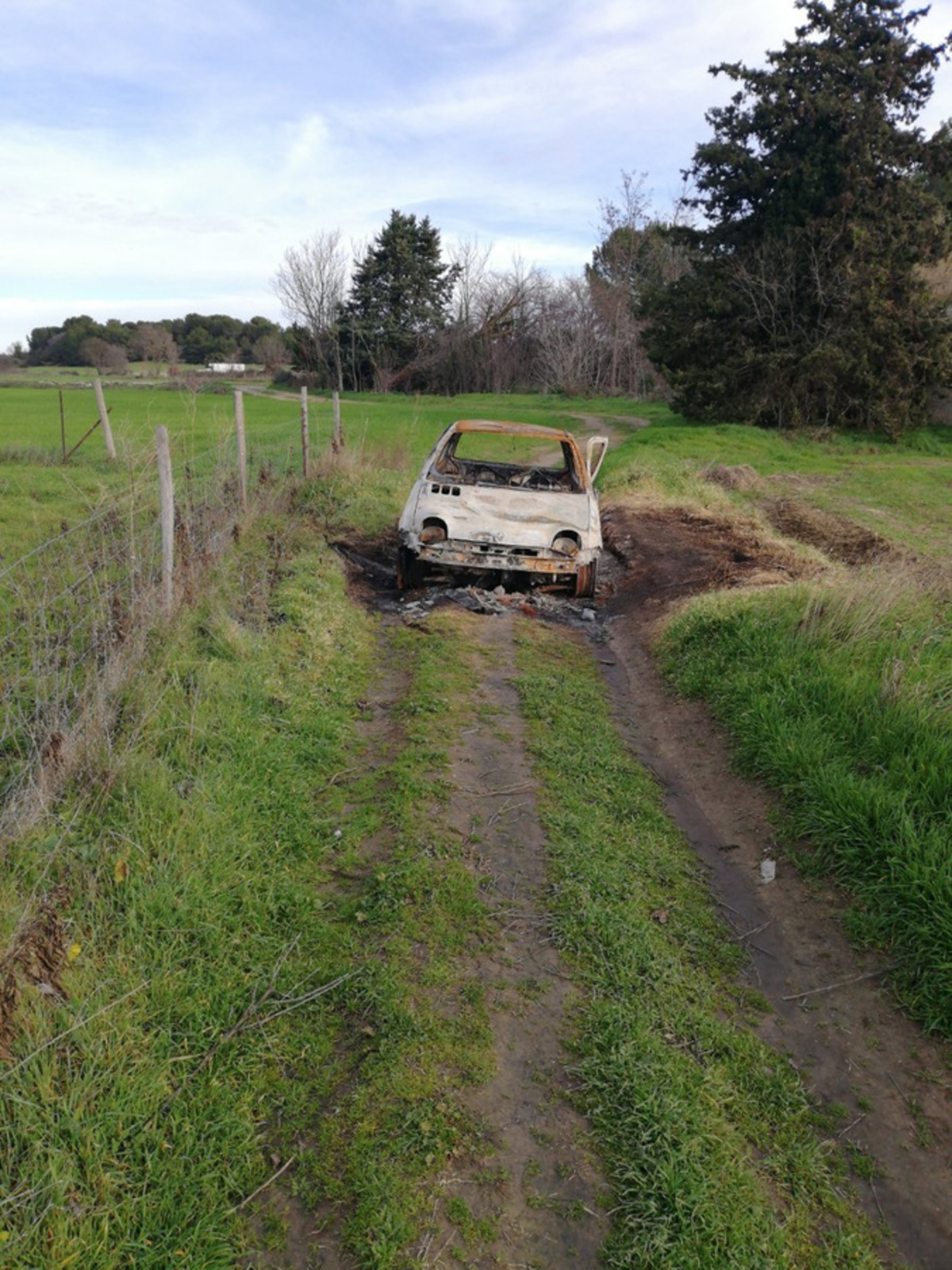 Différents dépôts sauvages de déchets et une voiture brûlée (laissée là depuis janvier 2020), le long du chemin au départ du cimetière.