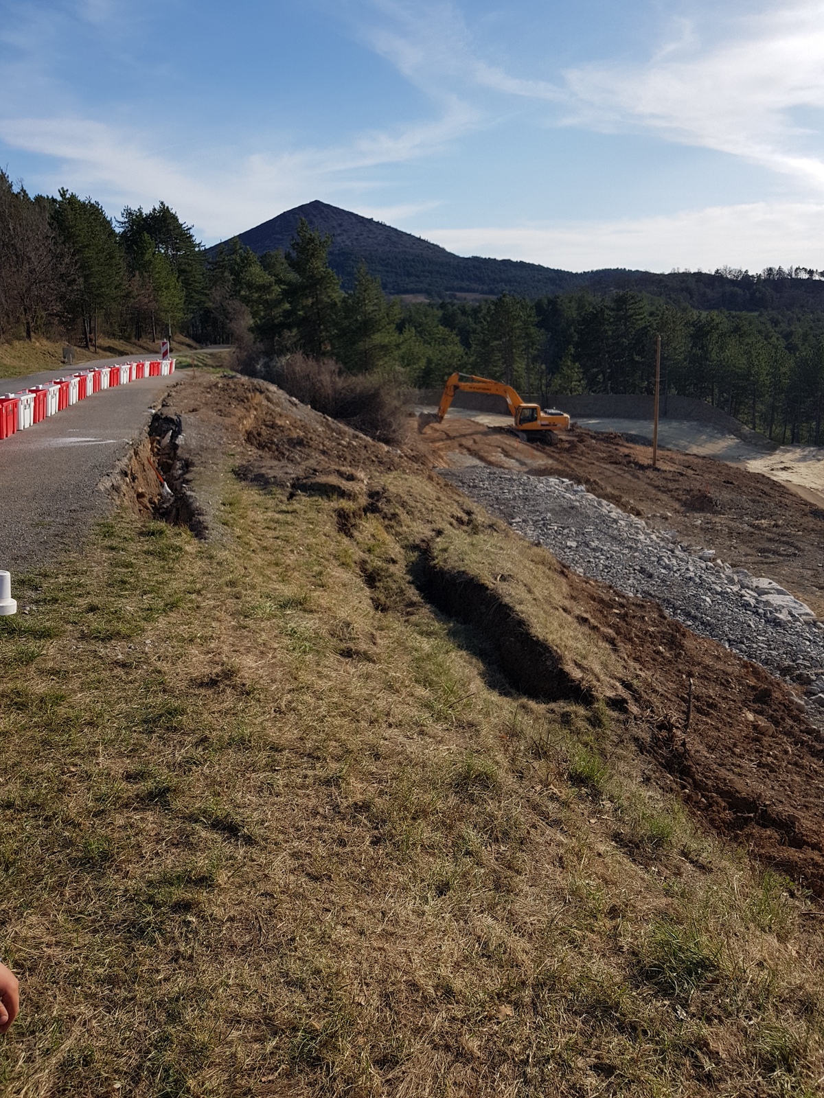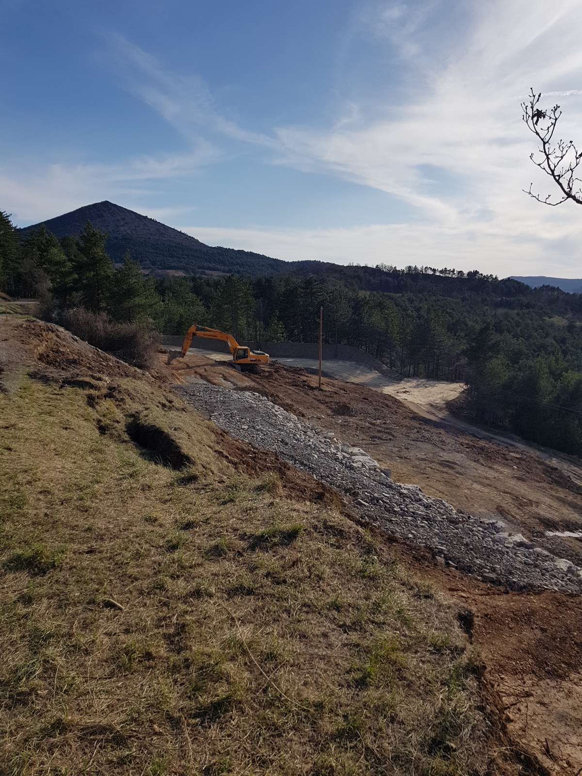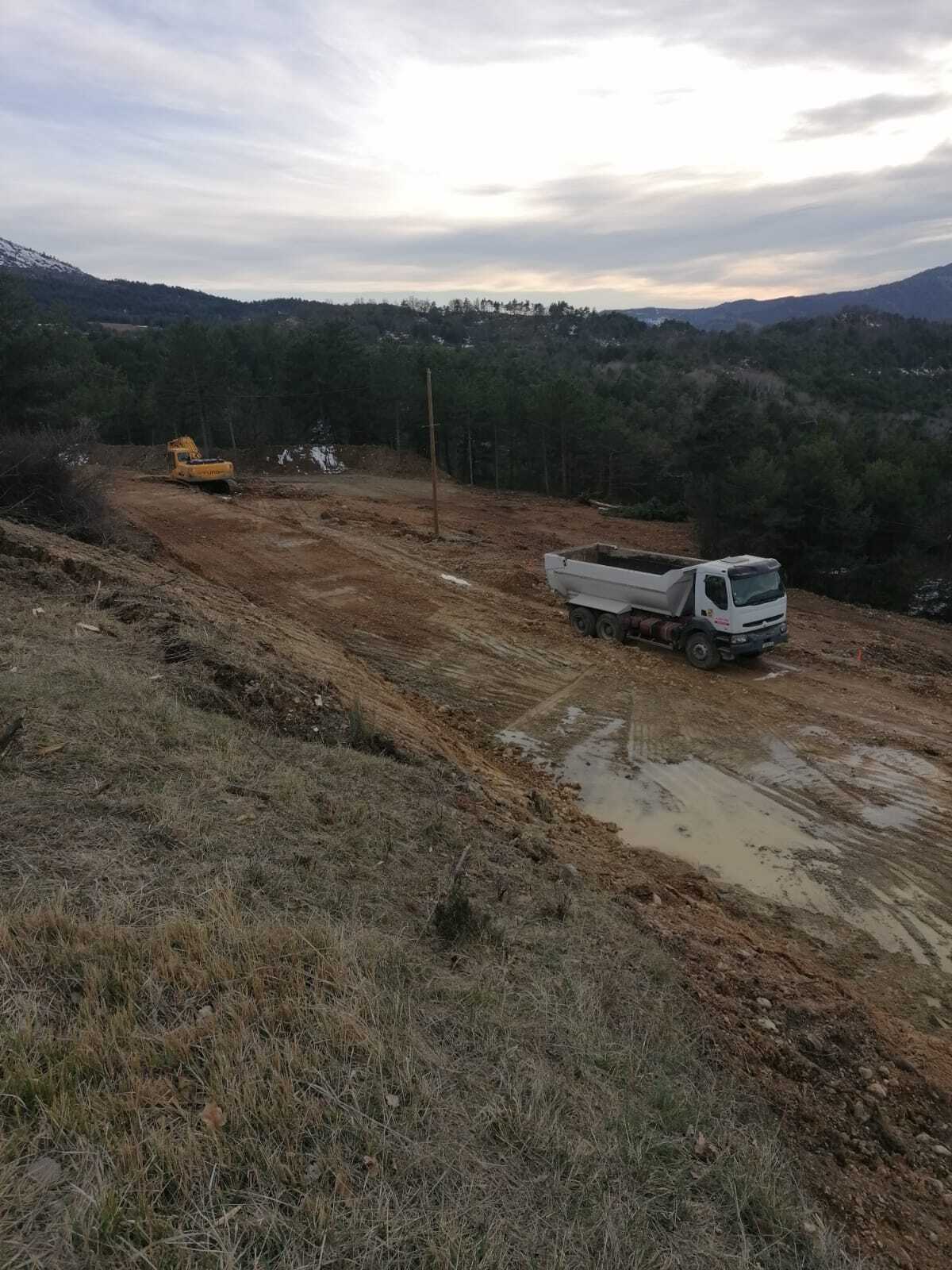 Travaux de terrassement avec coupes d'arbres pour la création d un centre technique pour l examen du permis de chasse, sur un terrain pentu, non constructible.