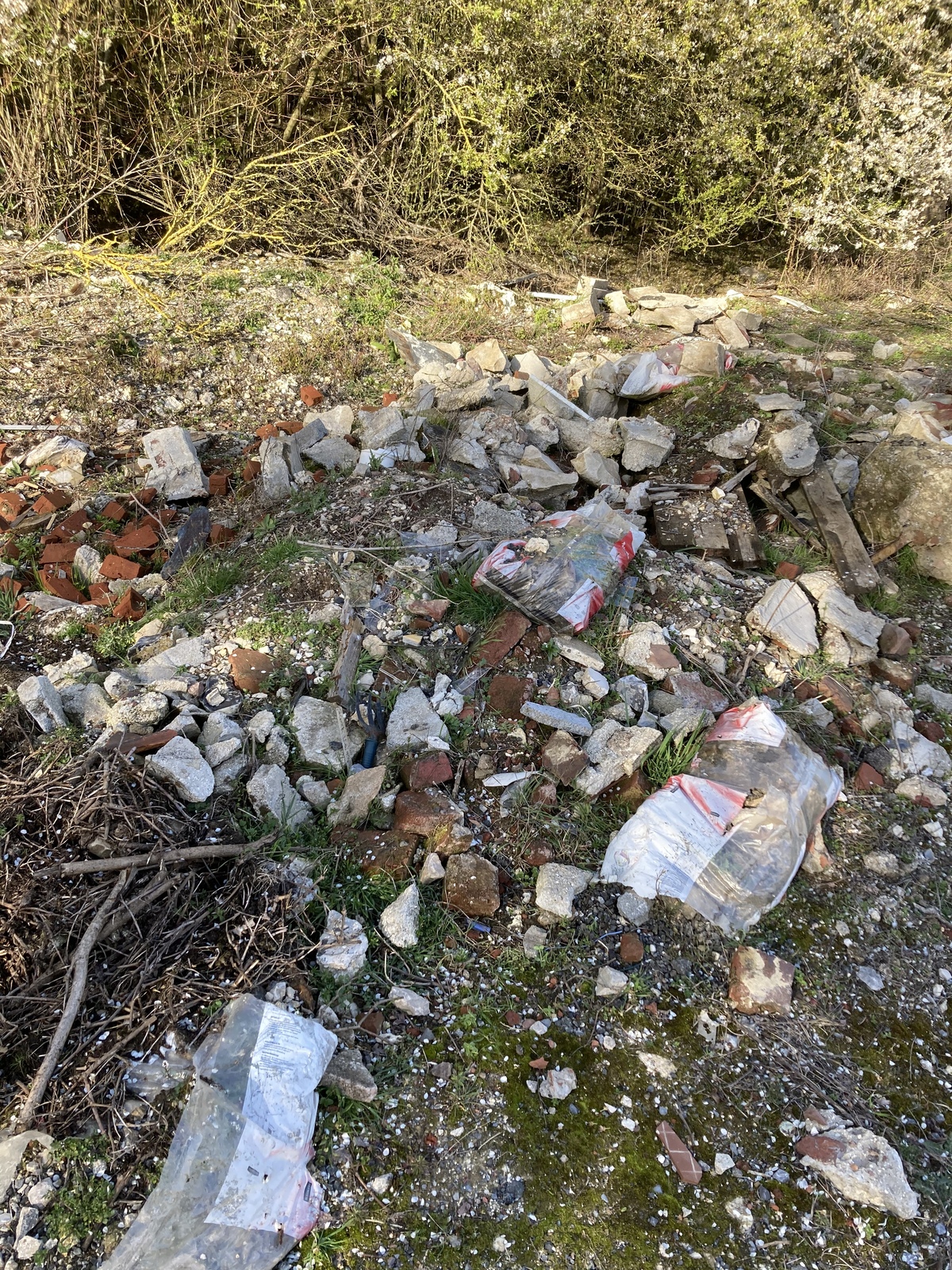 Dépôt sauvage de gravas, de palettes et de plastique ; Rien n'a changé ; toujours actuellement fidèle à la photo , de l'époque .