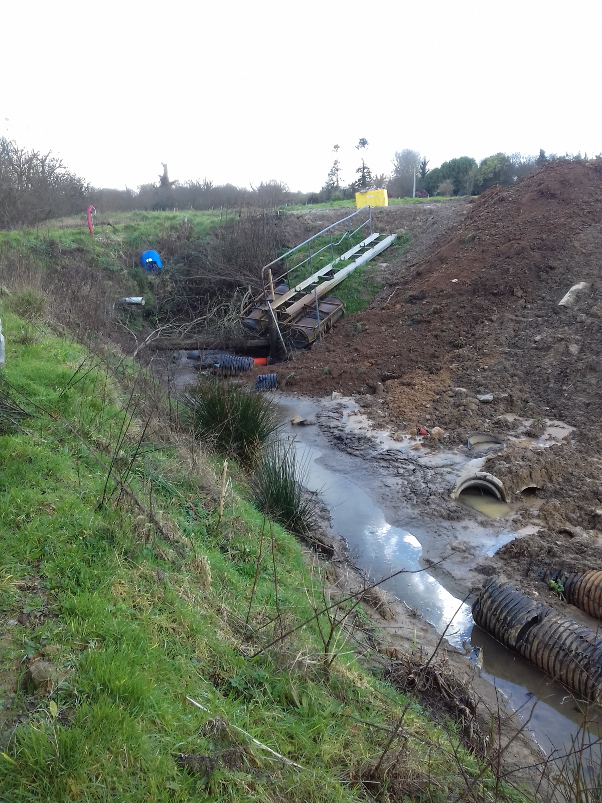 Les travaux effectués (comblement des plans d'eau) ici ont engendré des eaux boueuses relâchées dans le ruisseau et observées par les riverains.