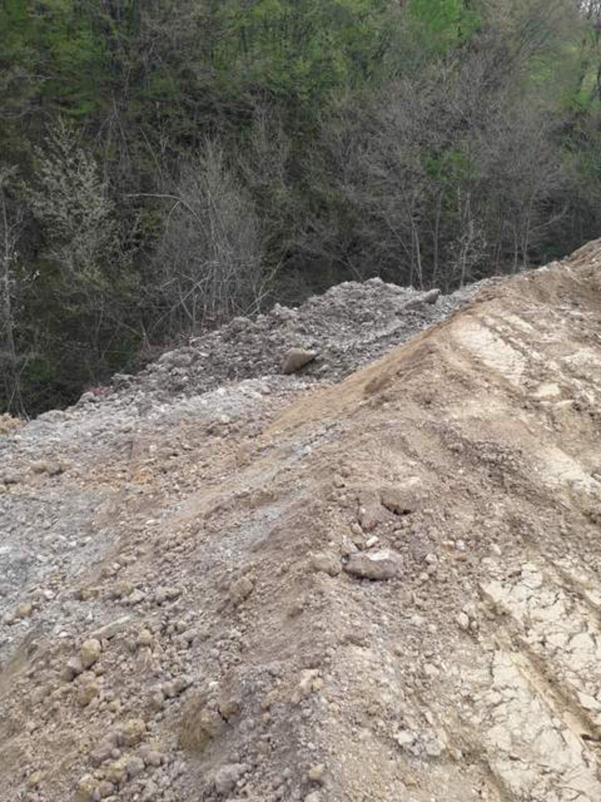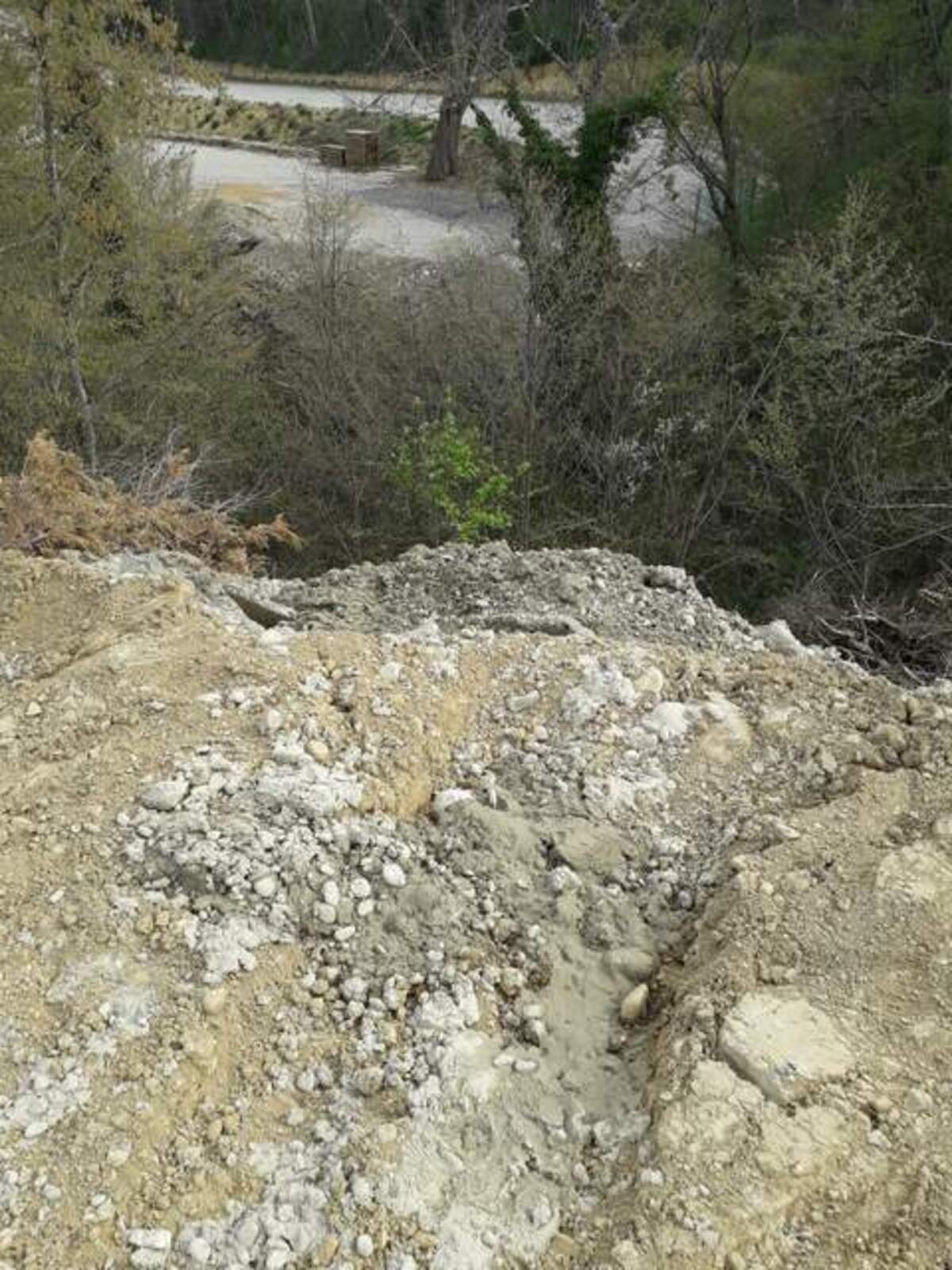 En plus de la terre de remblai et des arbres coupés qui avaient été jetés dans cette combe, il y a aussi maintenant des dépôts de béton qui arrivent jusqu'au ruisseau qui va vers les étangs (dont ceux du Parc des Lutins).