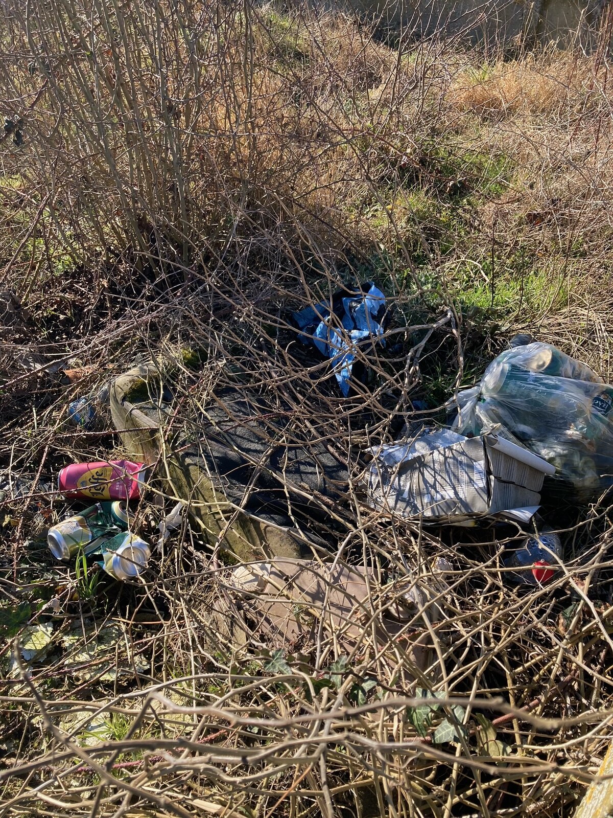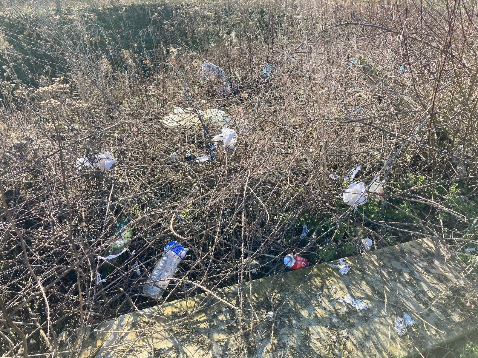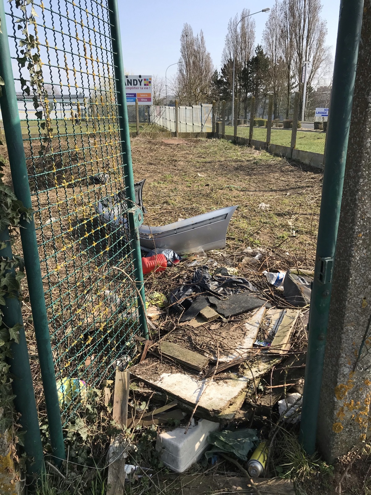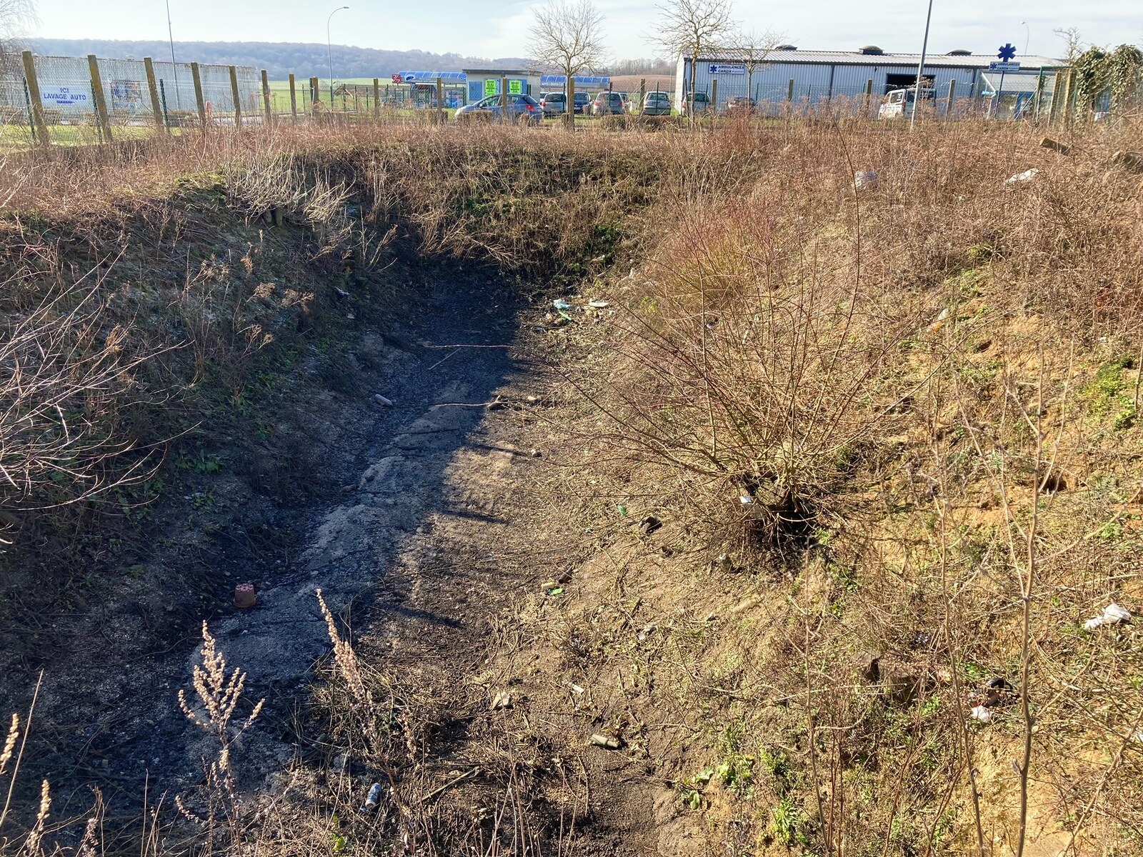 Dépôt sauvage de déchets dans un bac de récupération des eau de ruissellent de la route D 617