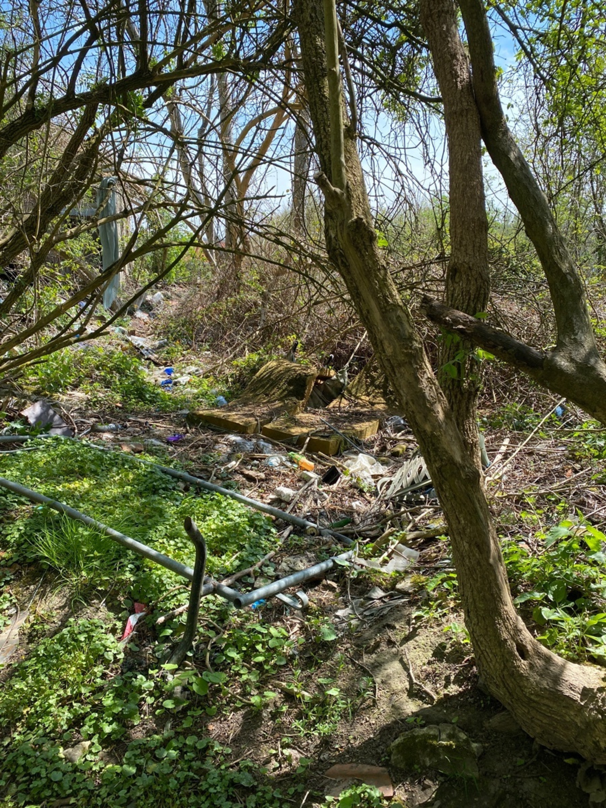 Décharge de plusieurs dizaines de détritus (Fer, mousse, verre, plastique...)