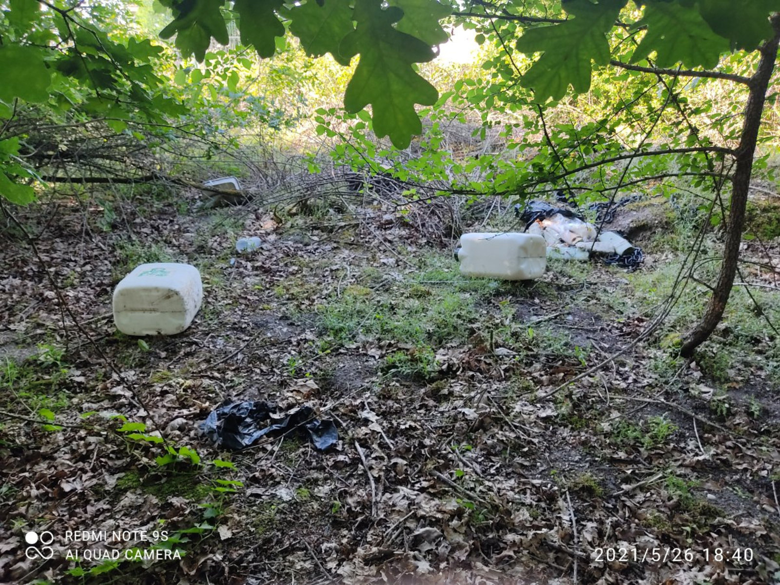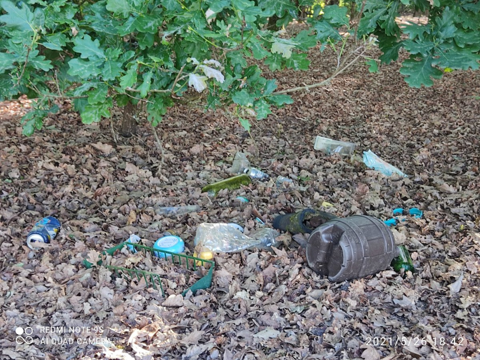Des déchets (bouteilles en verre, cannettes, bidons, bâche plastique, contenant en fer...) ont été déposés dans un espace vert à Eysines.