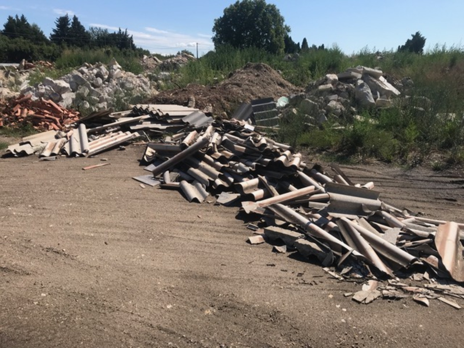 Dépôt sauvage au milieu de terres agricoles