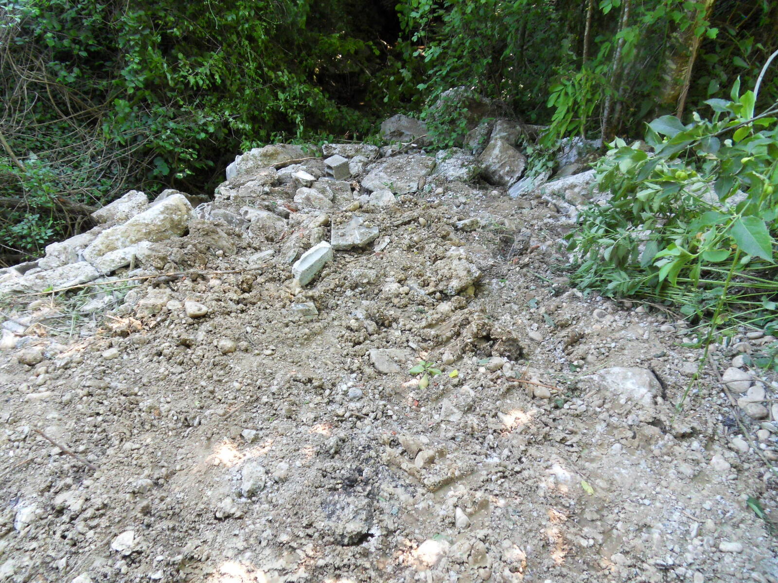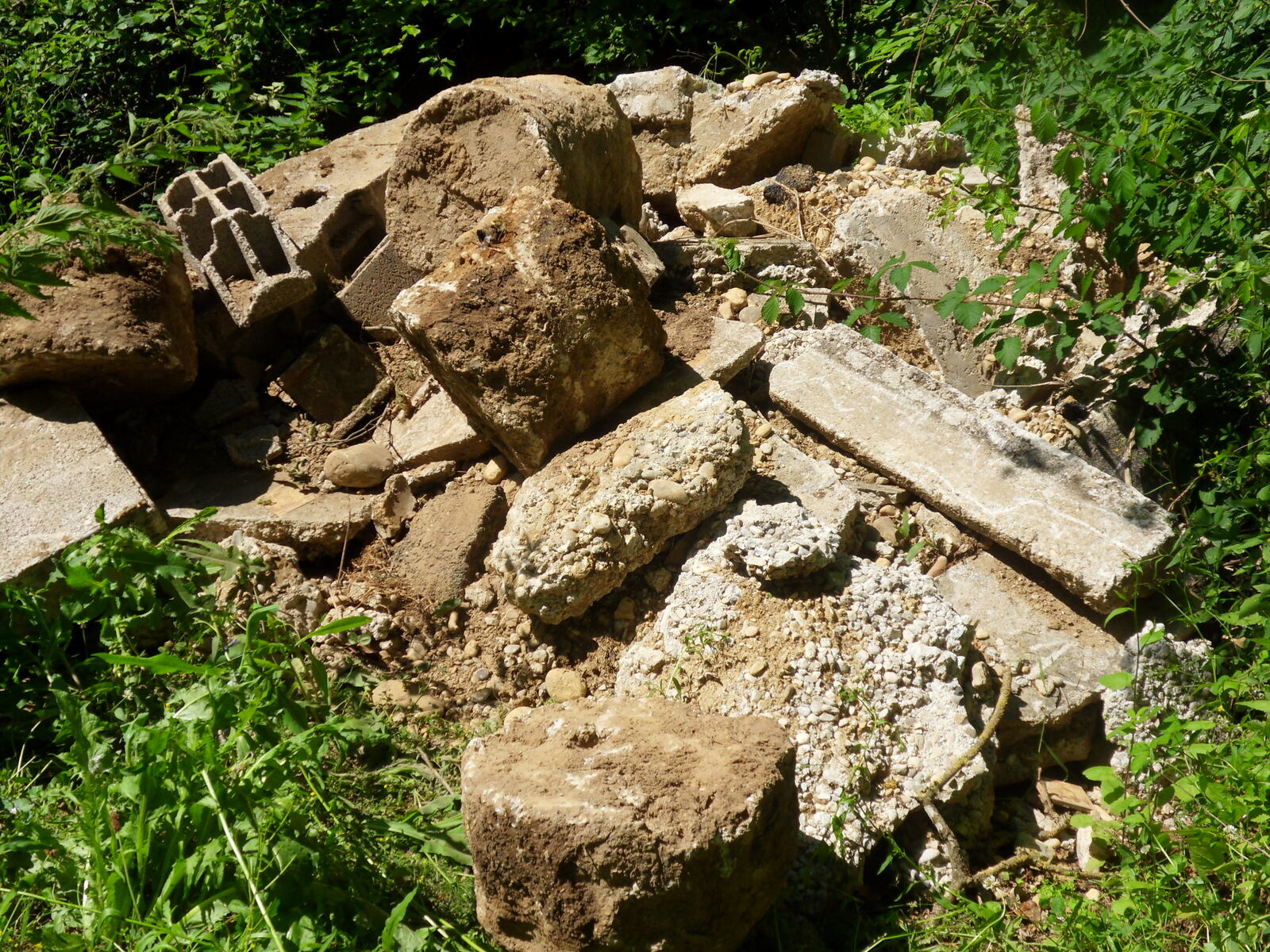 Dépôt de blocs de bétons, de morceaux de murs, de gravats, de tuyaux dans le lit du ruisseau de la Scie. Des déchets sont déposés régulièrement sur ce site depuis 2019. De nouveaux déchets ont été abandonnés sur site en septembre 2022.