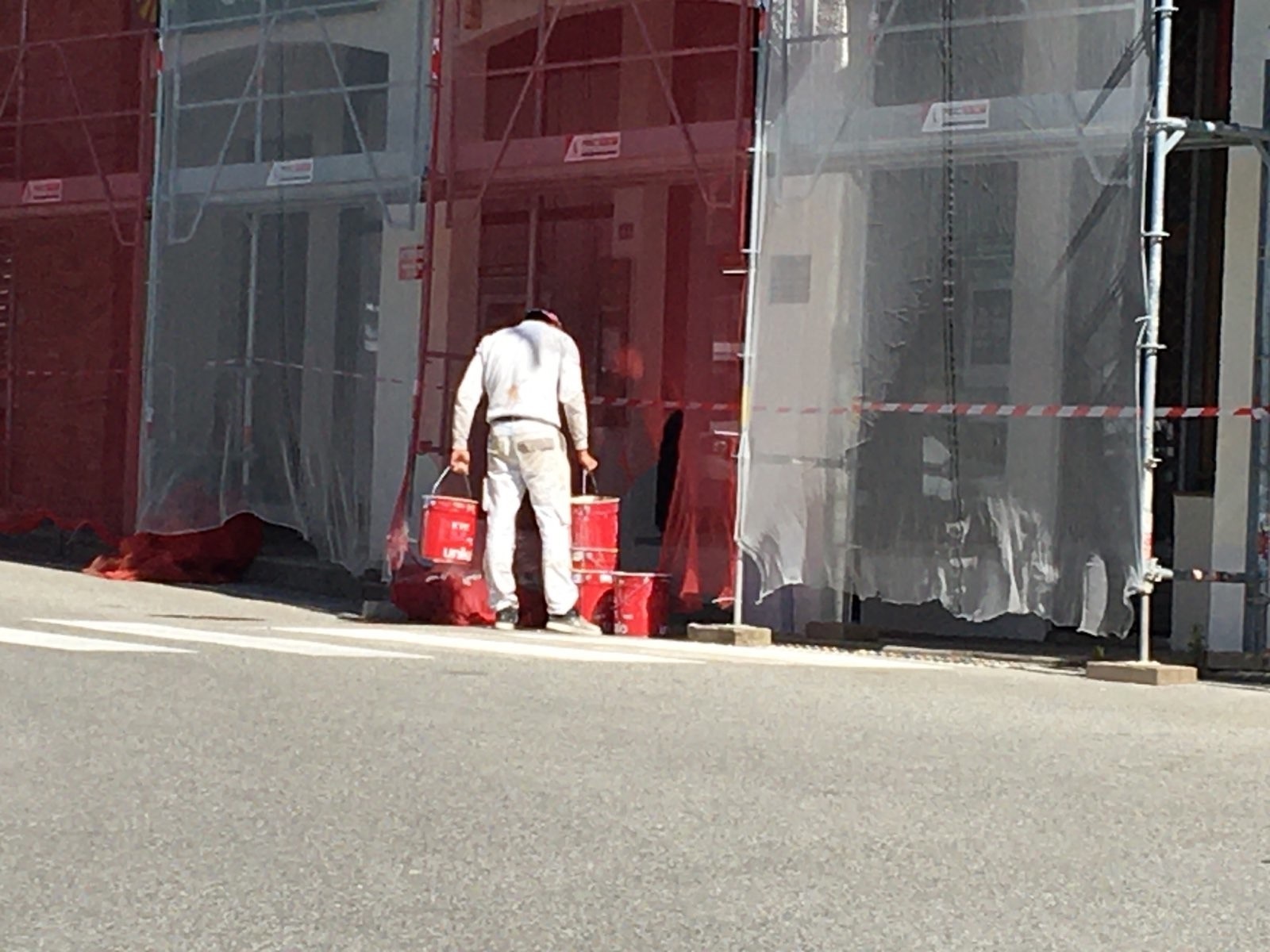 Déversement de restes de pots de peinture dans le réseau d'eau pluvial.