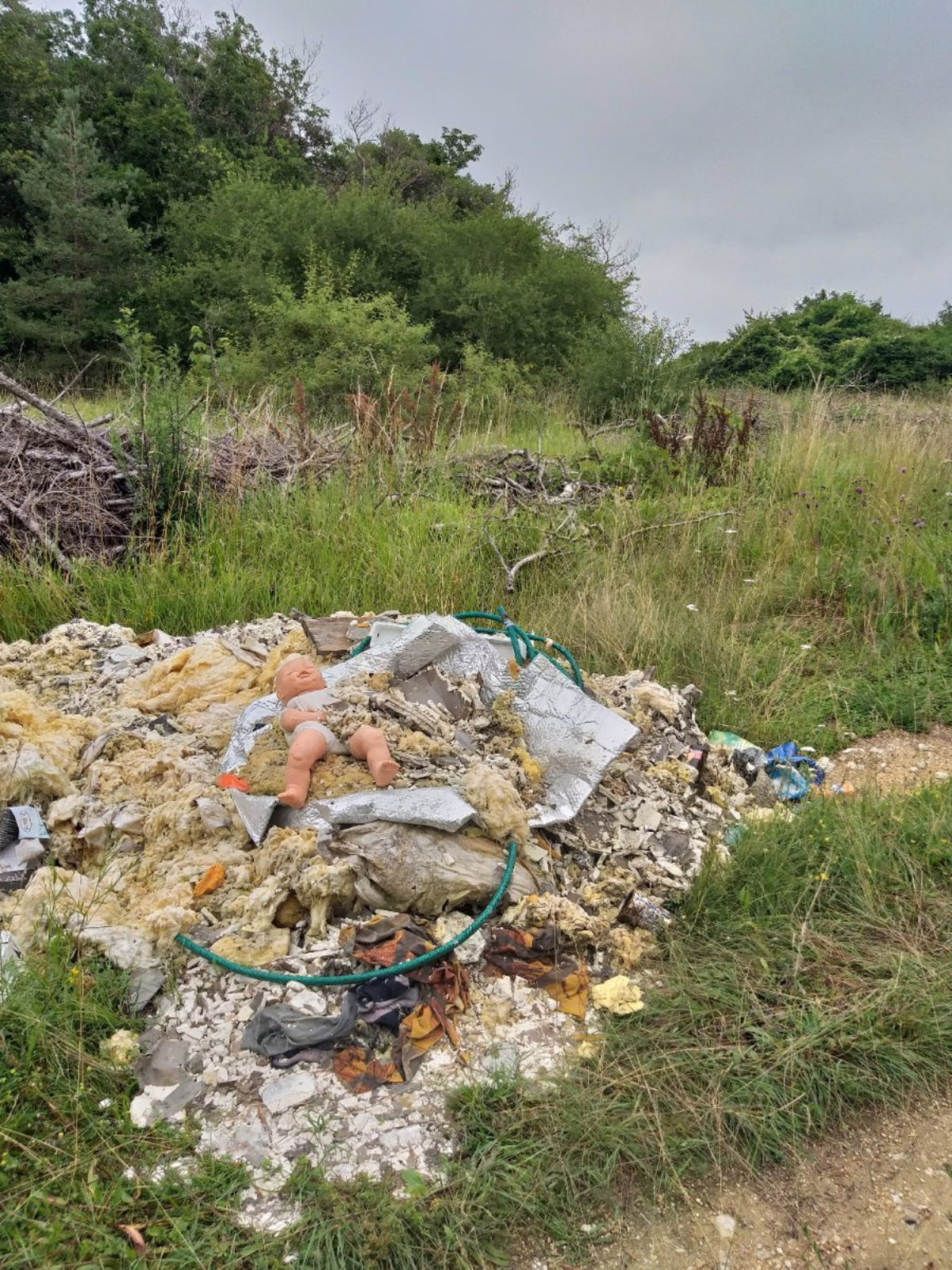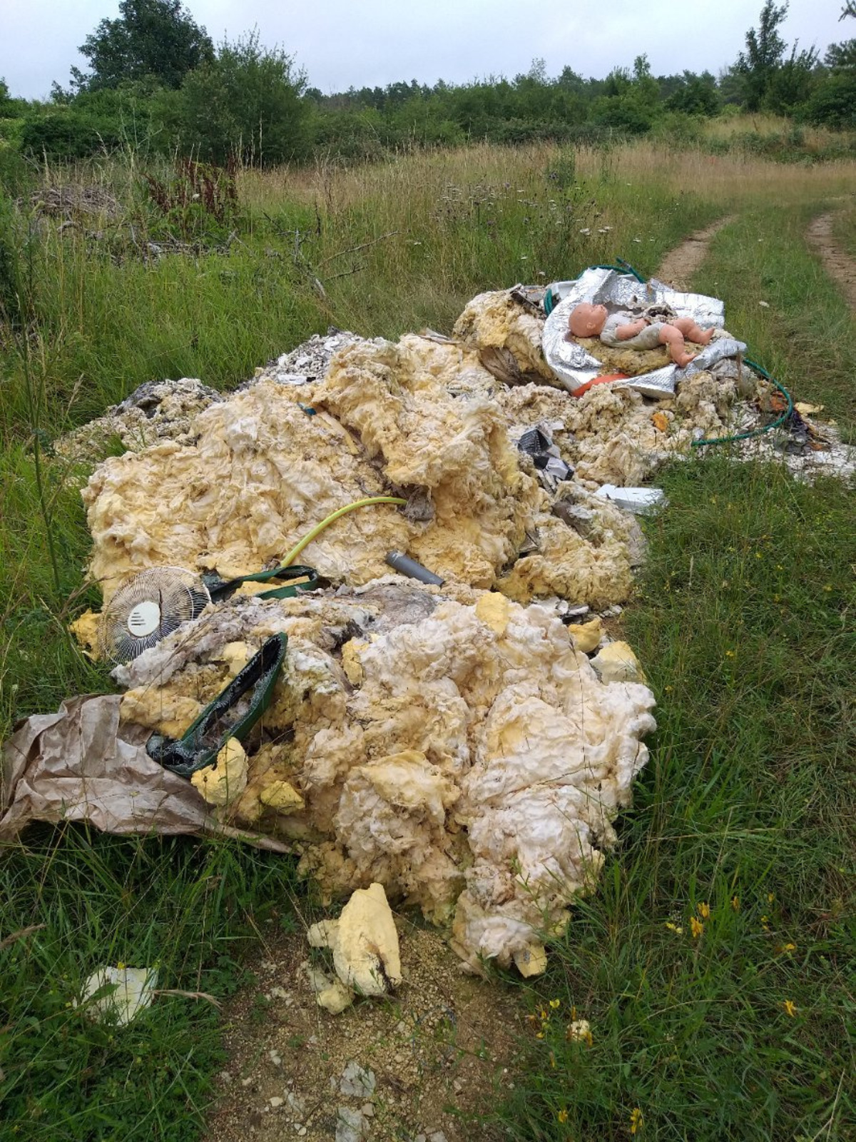 Laine de verre, plastique, verre, gravats... abandonnés sur le plateau dit "des puces" sur les hauteurs de Tonnerre.
