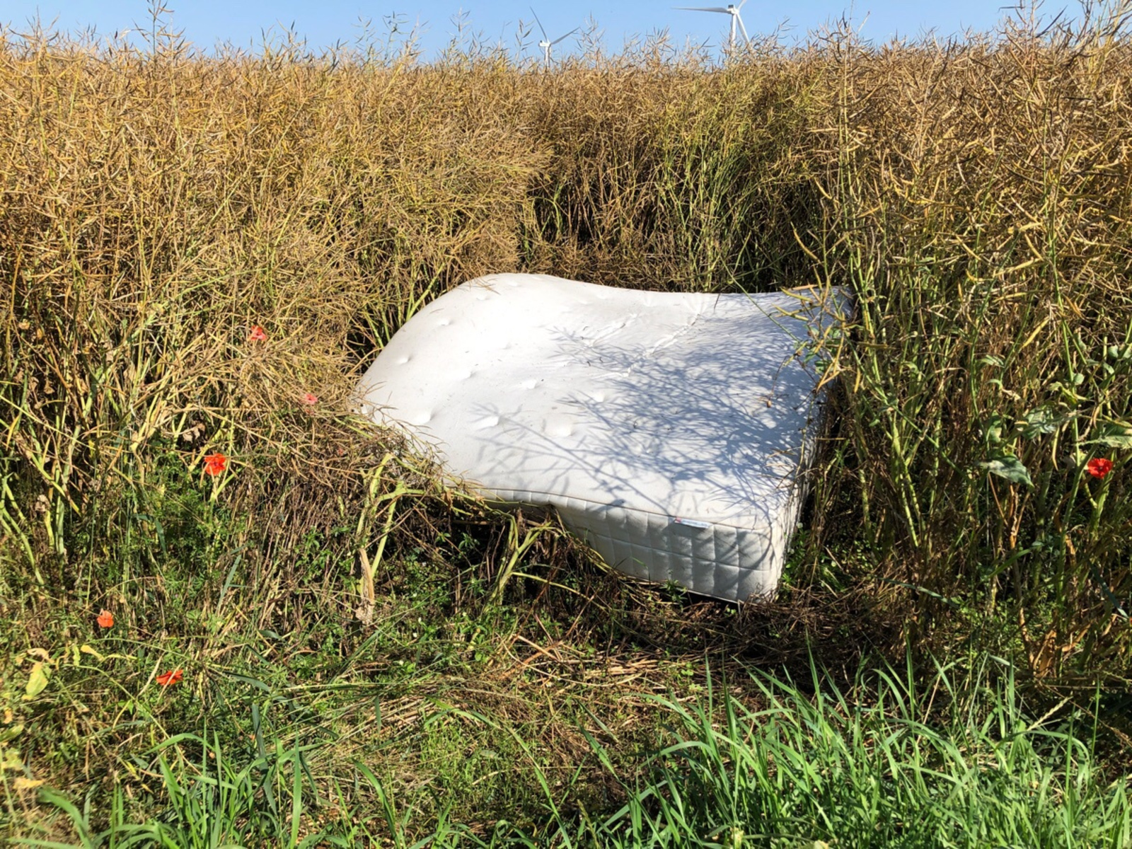 Matelas et tv déposés dans un champs