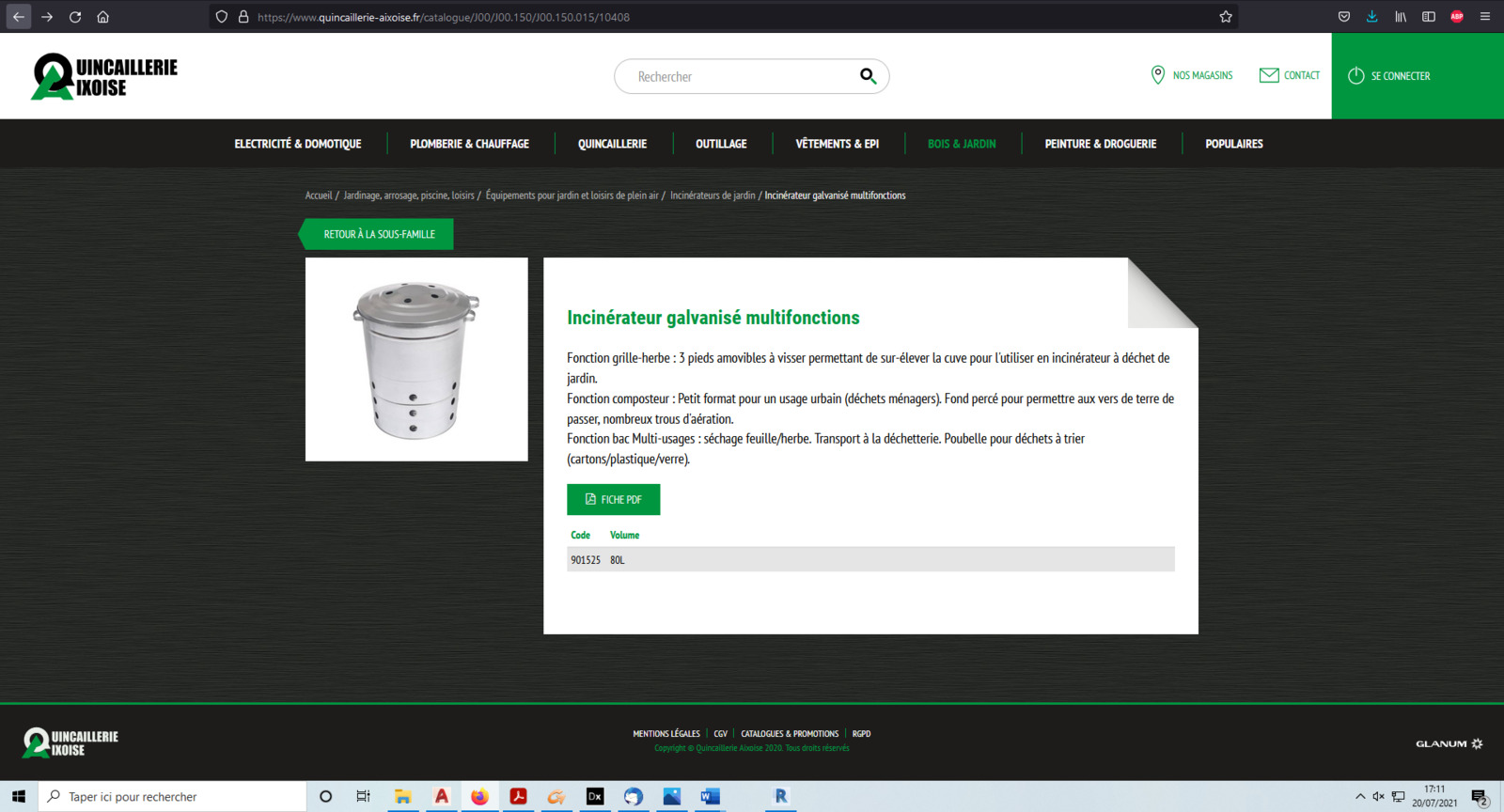 vente illégale d'incinérateur de déchets verts sur le site internet Quincaillerie Aixoise.