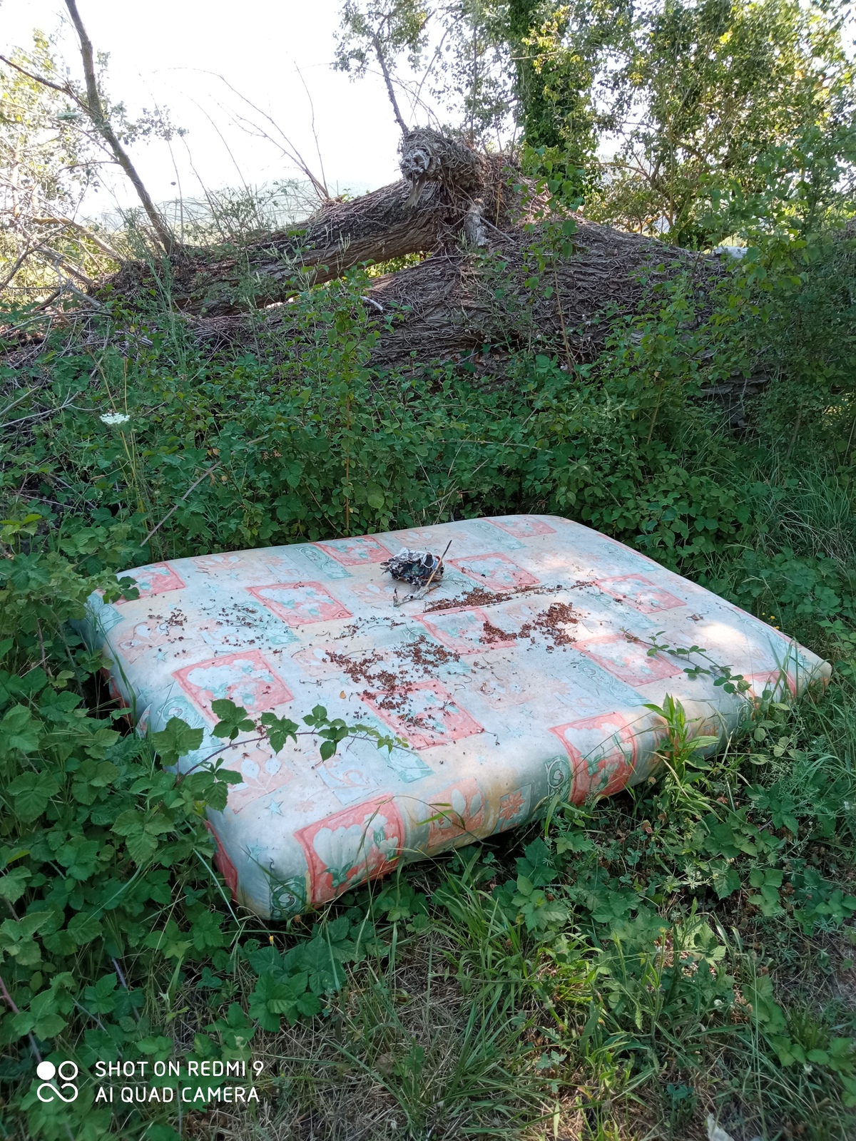 Vieux matelas abandonné en bordure de la Durance.