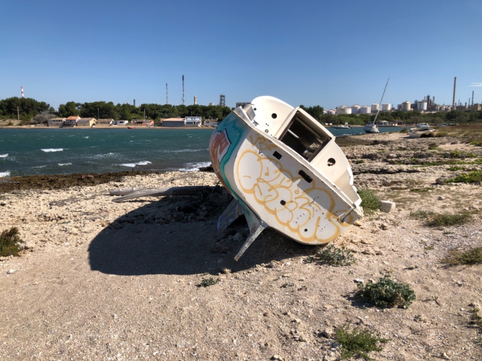 Epaves de bateaux abandonnées sur le rivage depuis plusieurs années