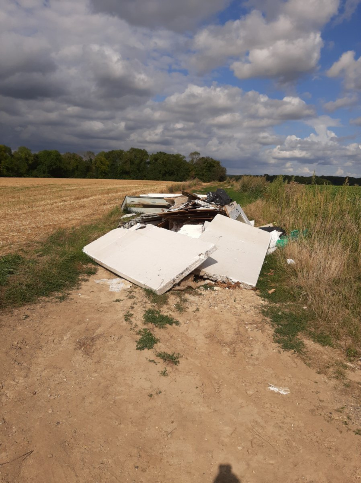 Des déchets du bâtiments ont été illégalement déposés sur un chemin en zone agricole.