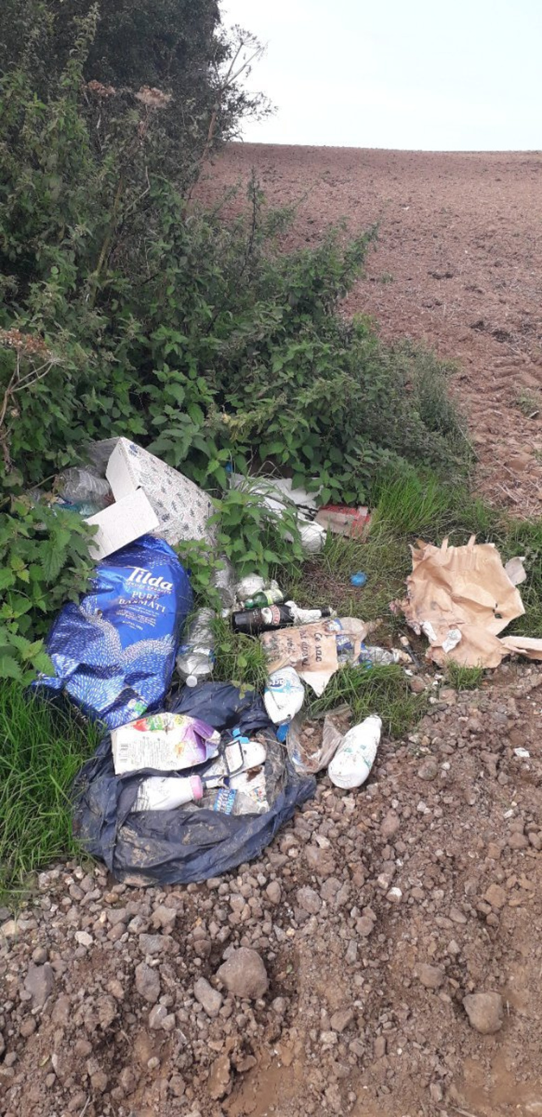 Déchets ménagers le long d'une route