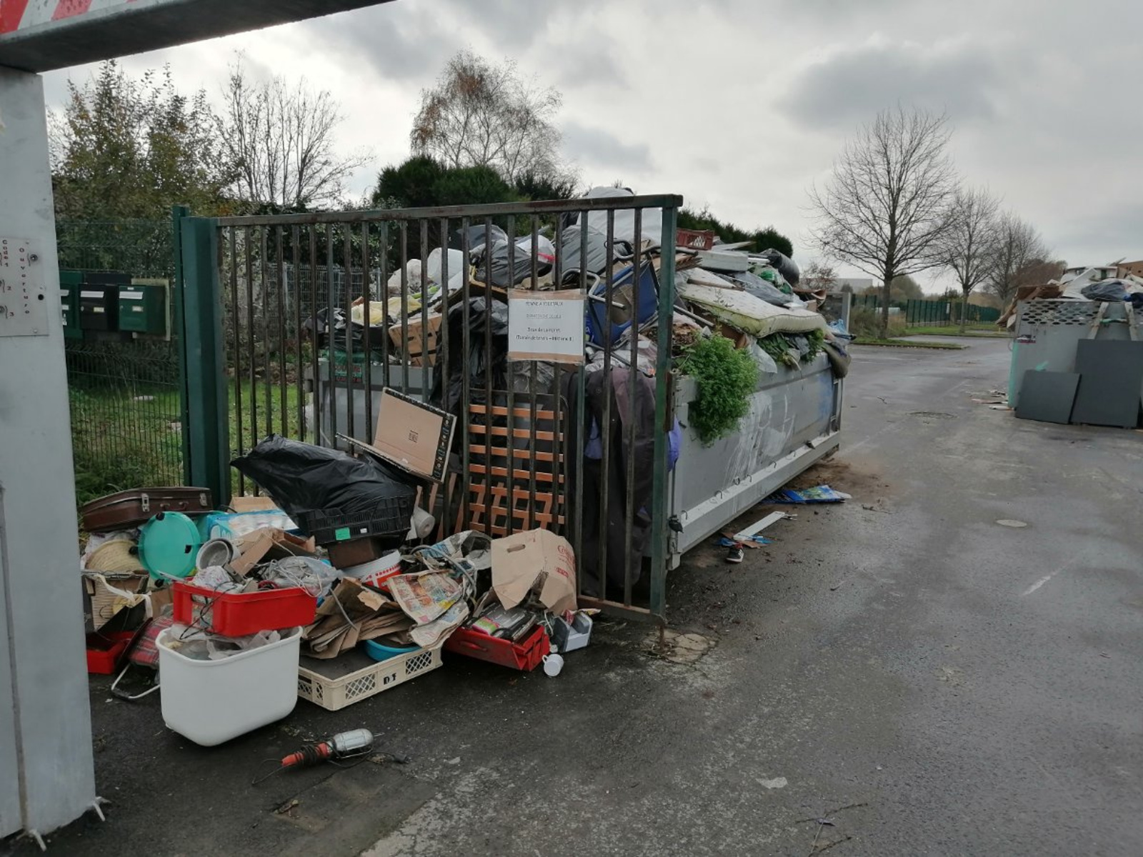 Dépôts de déchets dans des bennes à végétaux et à côté.