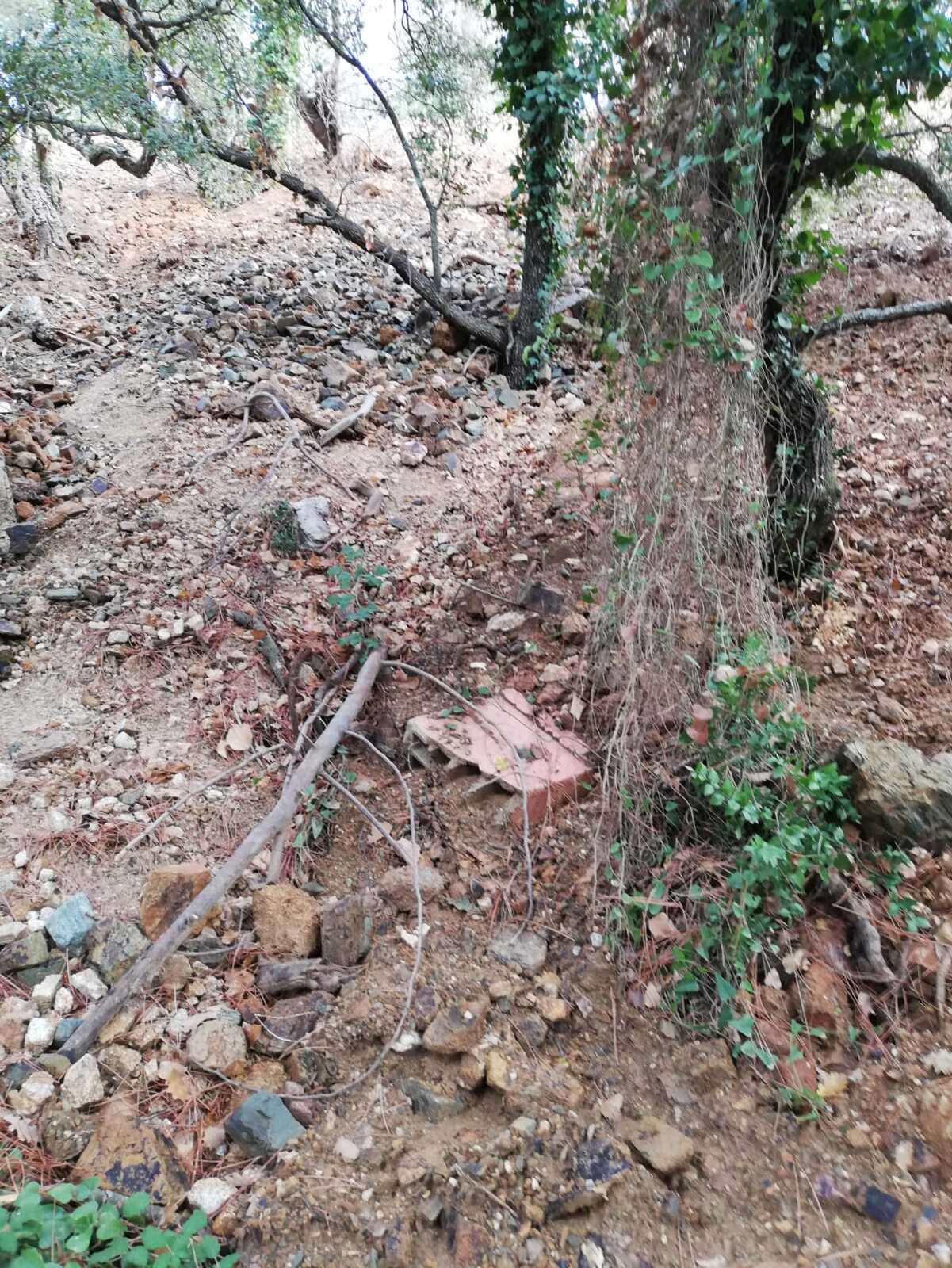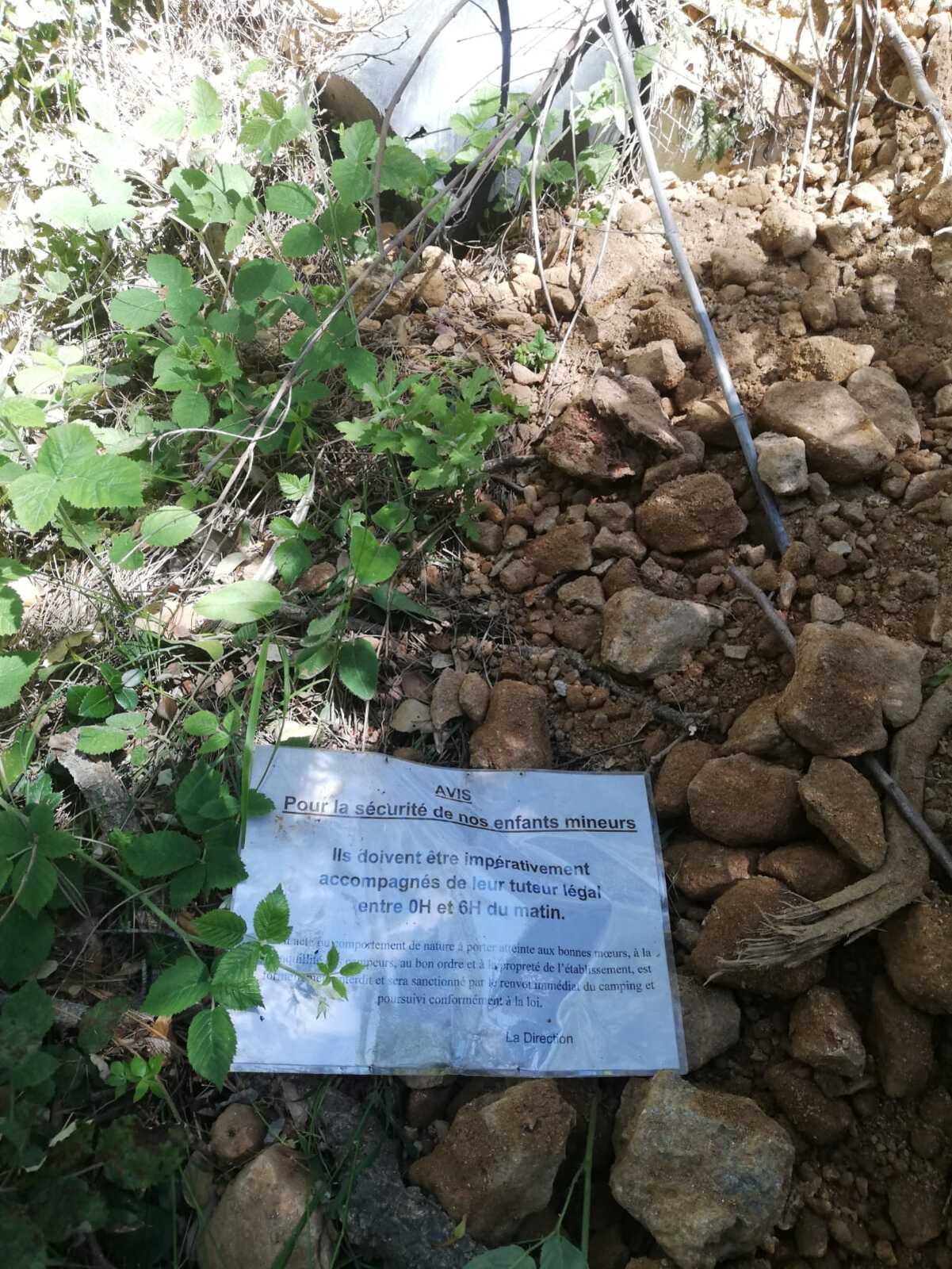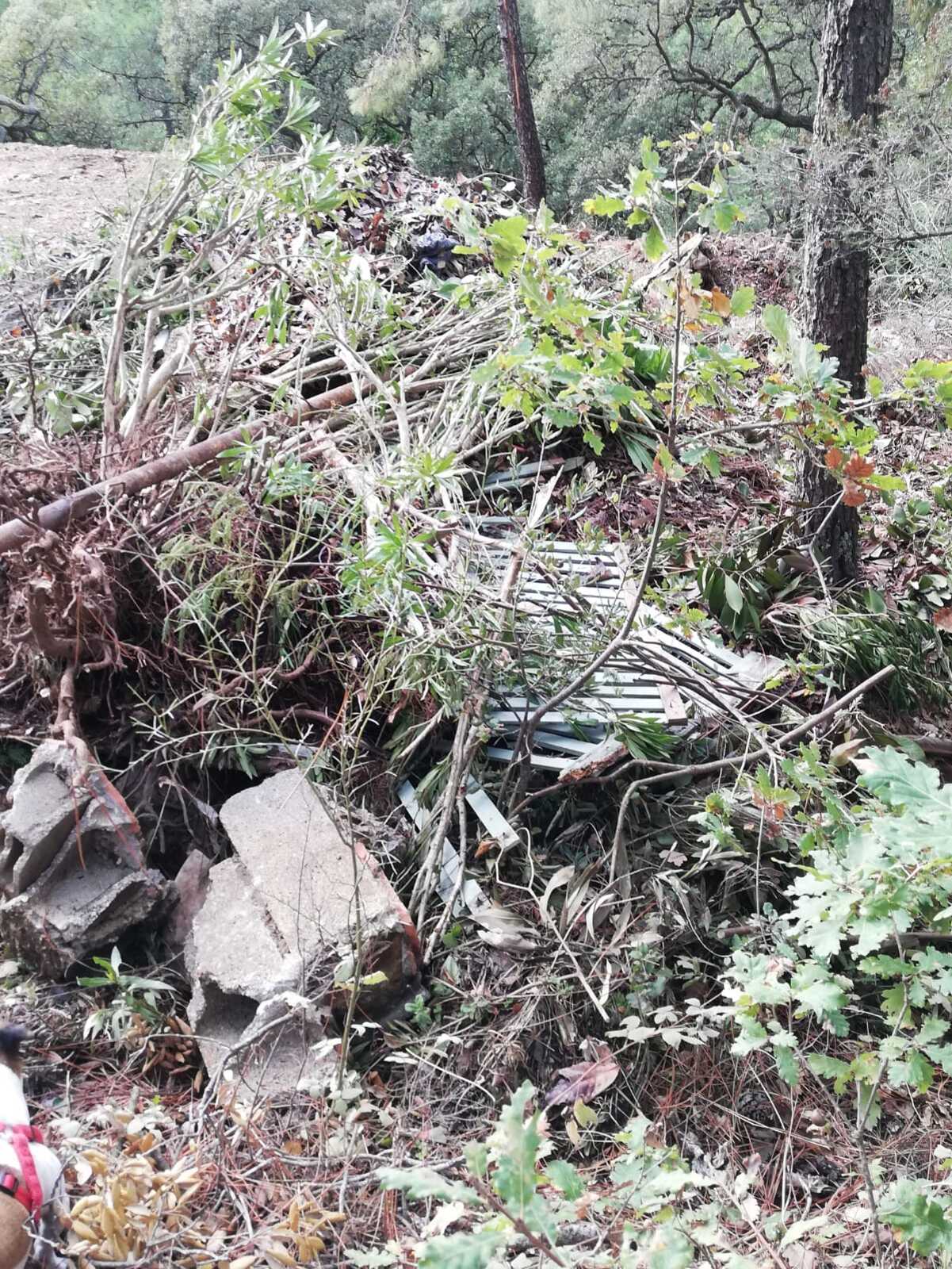 Stockage et enfouissement de déchets divers (gravas, chaises plastiques, ferraille, végétaux...) sur plusieurs dizaines de mètres, en zone boisée, près du camping Parc Montana.