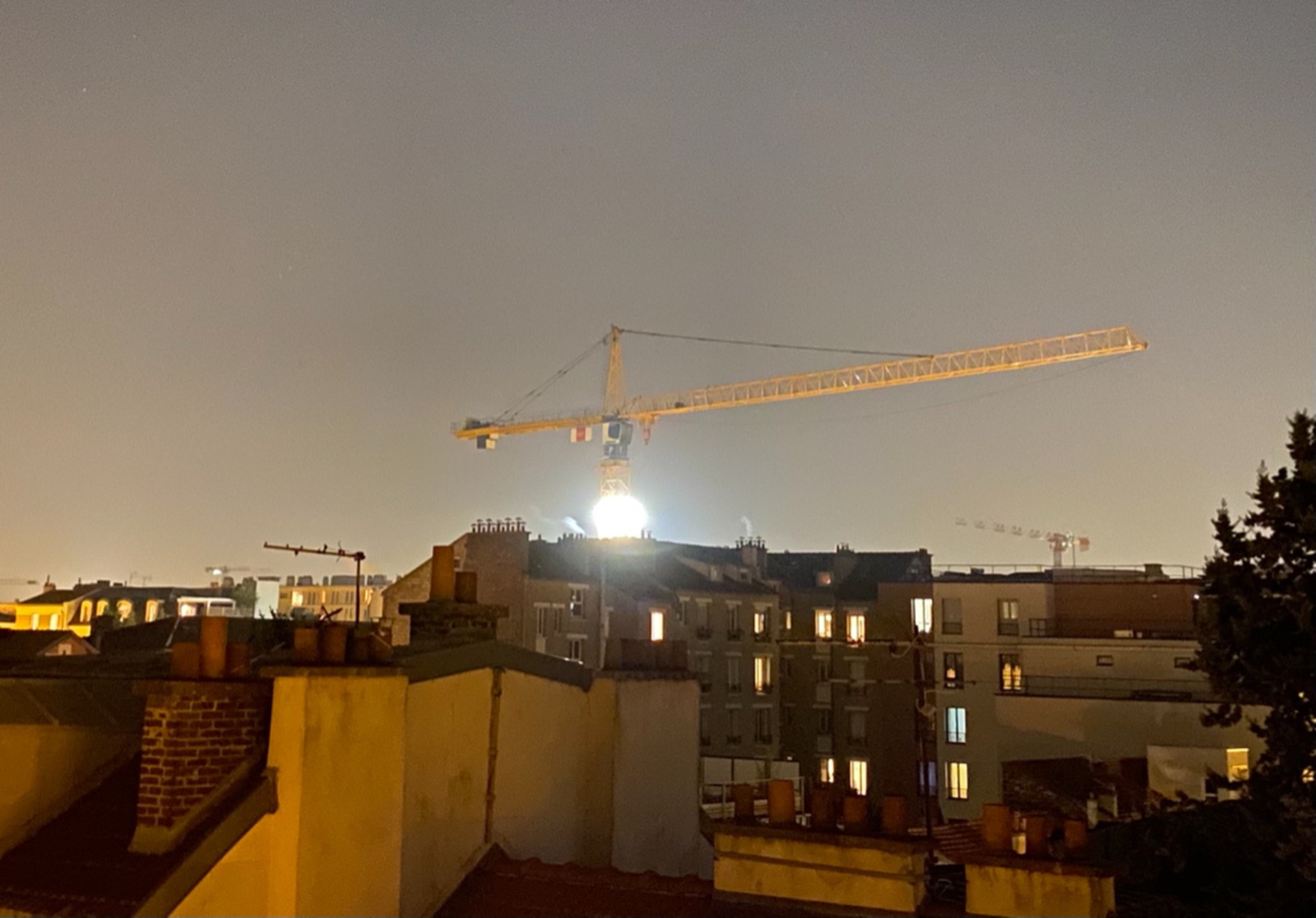 Une installation de chantier produit une lumière intense en pleine nuit. Ceci va à l'encontre de la réglementation française sur la pollution lumineuse.