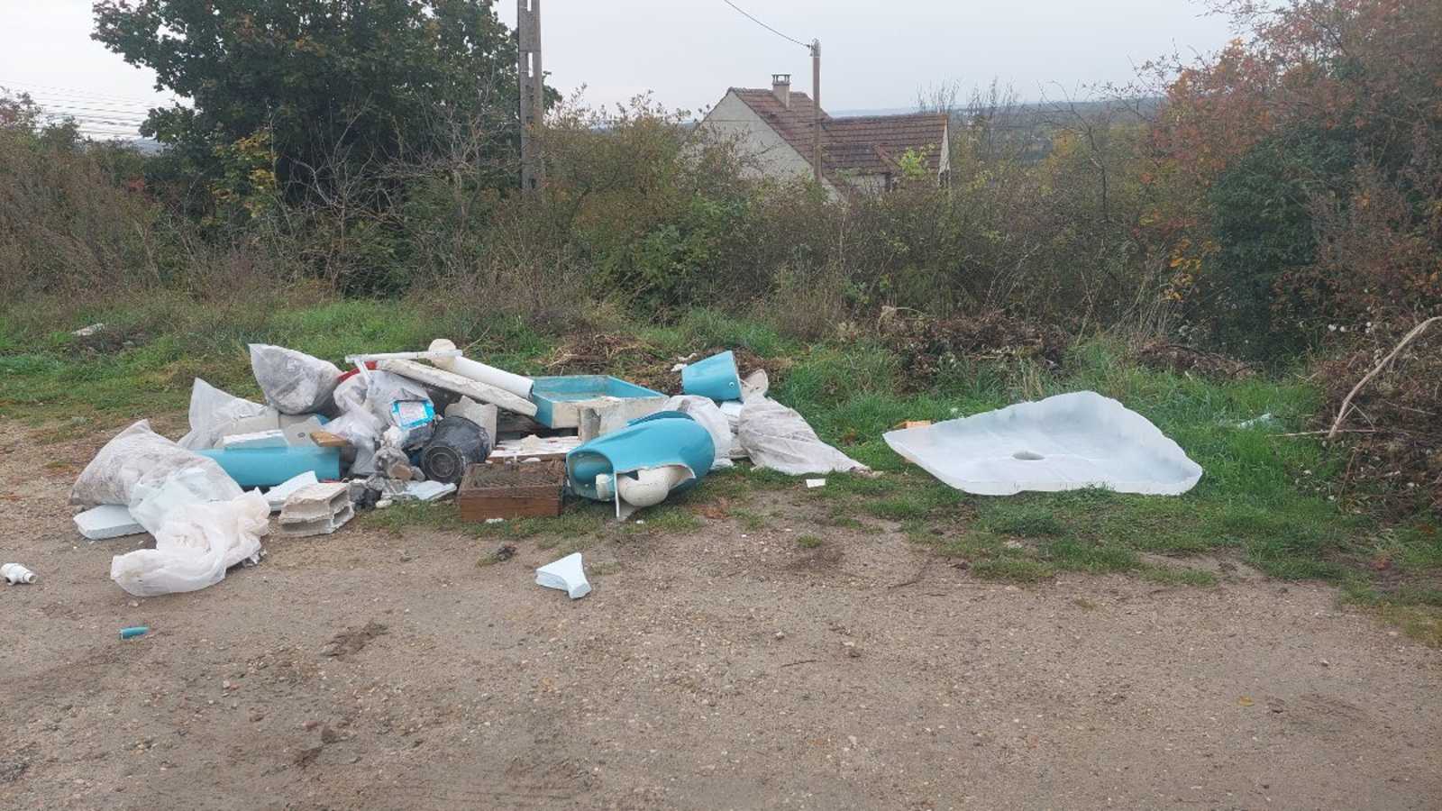 Des déchets on été illégalement déposés aux abords d'un chemin dans une zone agricole