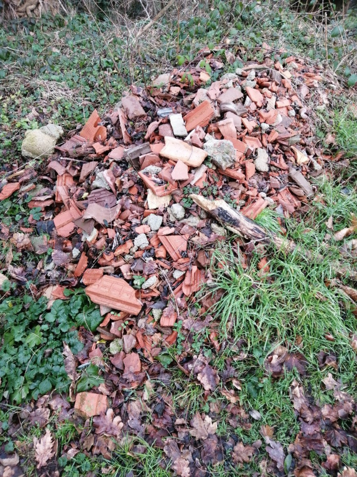 Dépôt sauvage de déchets de bâtiment (brique) en bordure de chemin