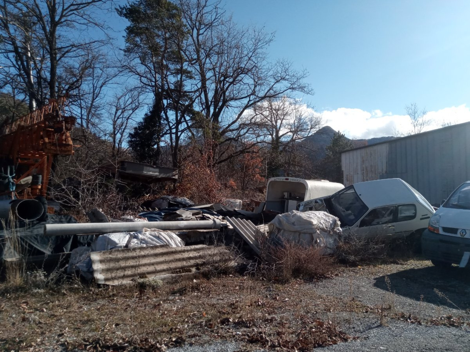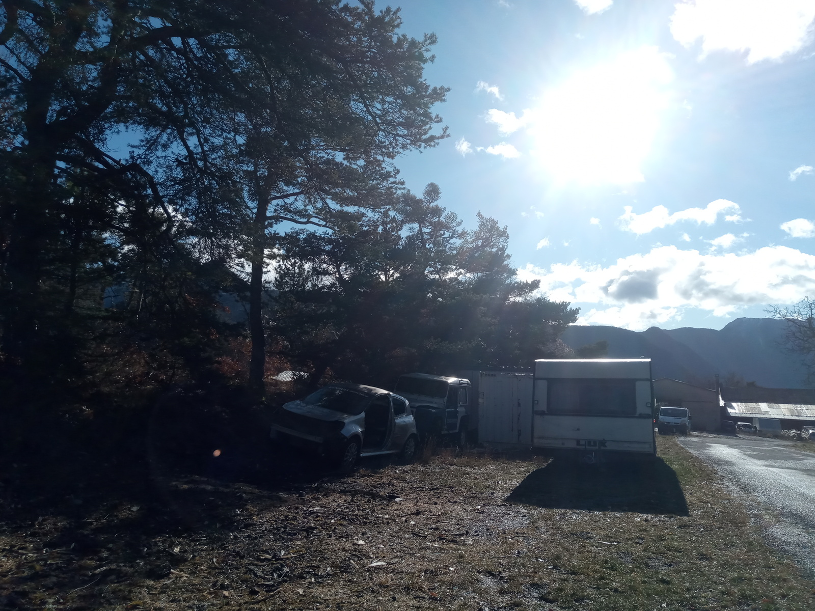 Amas de voitures d'environ 18 véhicules dont un de la gendarmerie, plastique, amiante, encombrants, pneus, verre cassé, carrosseries rouillées, fuites potentielles de liquides automobile, caravanes, fourgons, algeco, containers. Le tout sur un terrain communal, les enfants jouent dedans.... Cela génère une forte pollution au minimum visuelle, certains véhicules sont empilés à 45°, de potentielles fuites de liquides sont possibles et donc une pollution du sol, de l'eau et donc du vivant. Il y a des matériaux de construction, métal, béton, bois, tôles, pare brises et vitres auto cassés, une grue, des tubes, des conduites aimante.