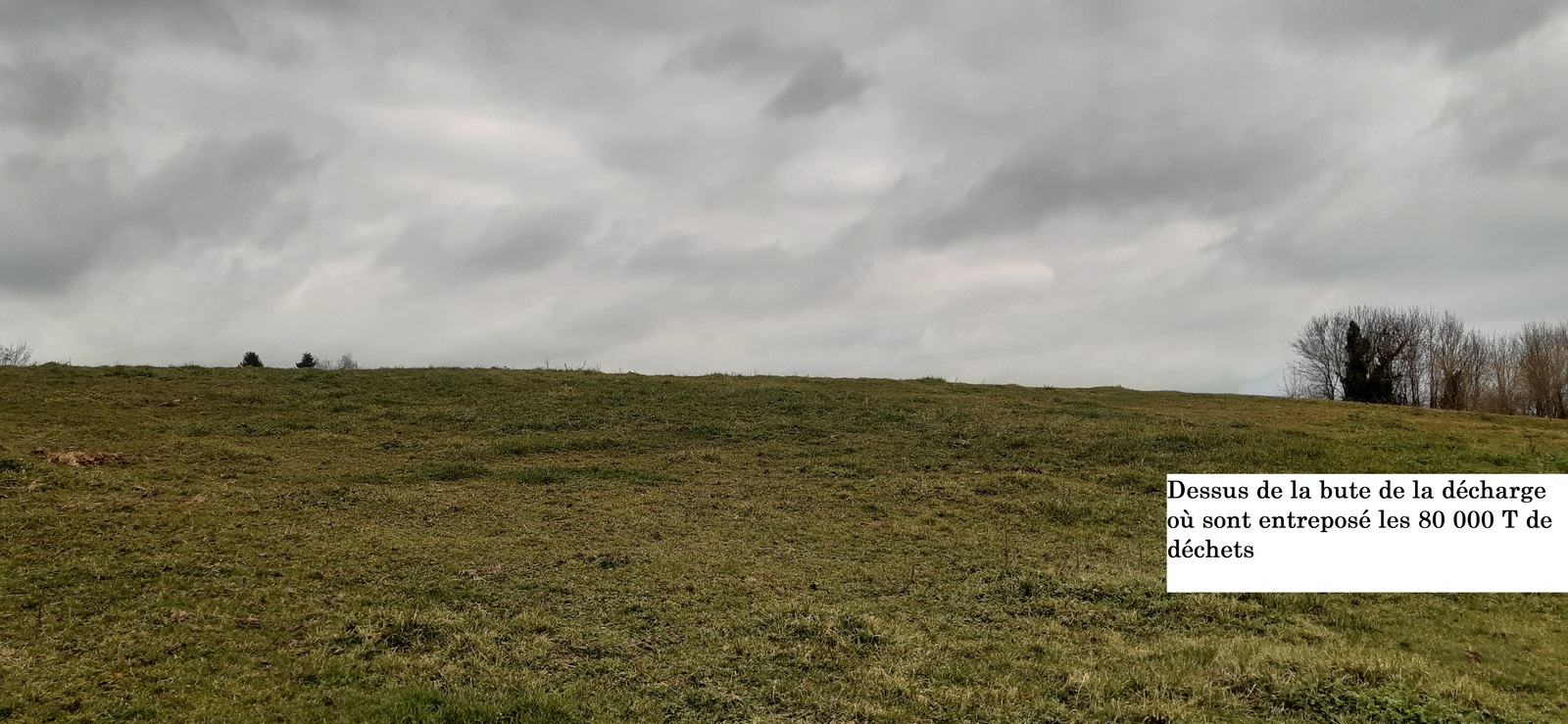 Les déchets broyés sont restés stockés sur 2 sites. Un, en merlon, sur l'espace de l'usine de broyage, l'autre enfoui dans un vallon proche. En 2017 les déchets sont toujours présents sur les sites.