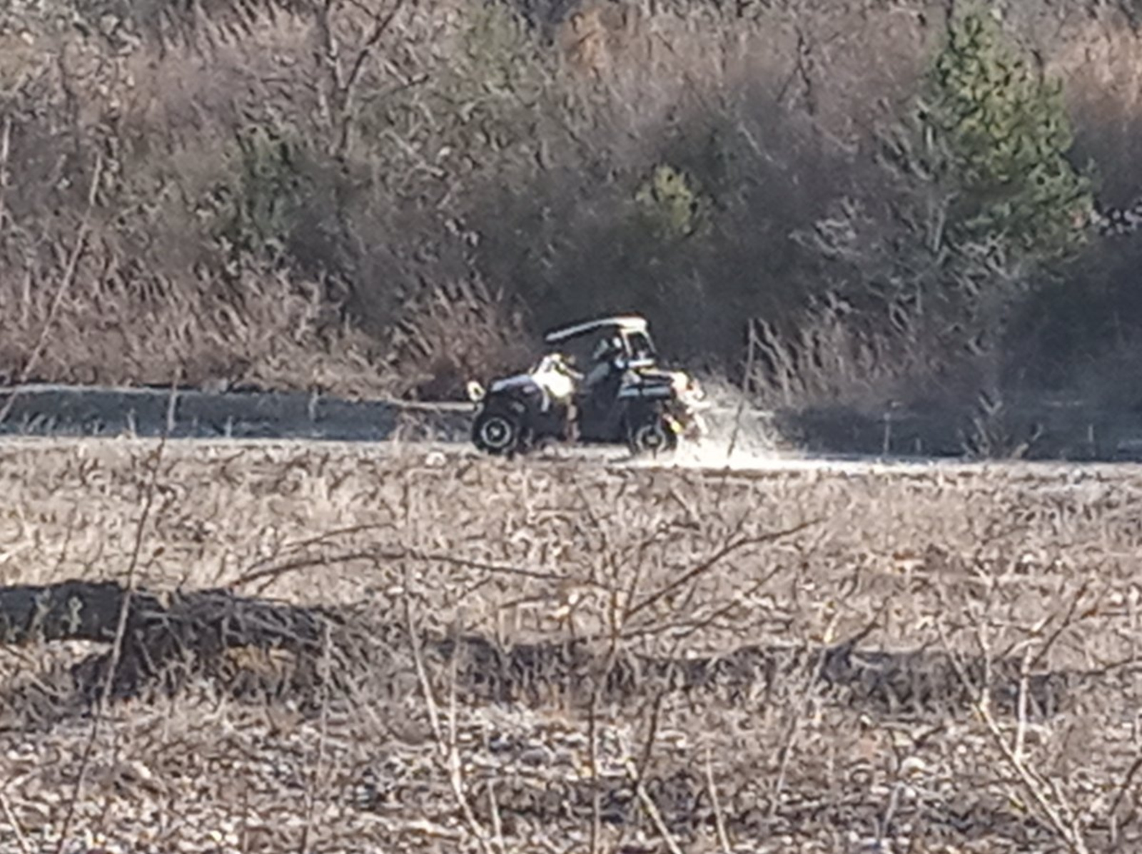 Quad circulant dans le lit de l'Asse, dans l'eau et sur les gravières du lit mineur d'une rivière protégée (présence de castors et aprons).