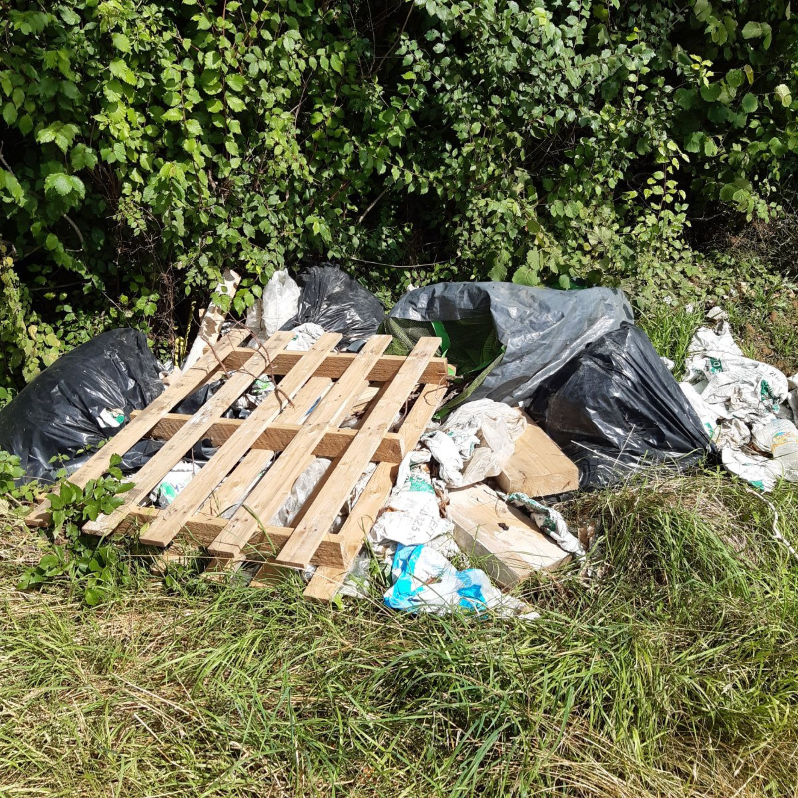 Des déchets ont été illégalement déposés dans une zone agricole en bordure de forêt.