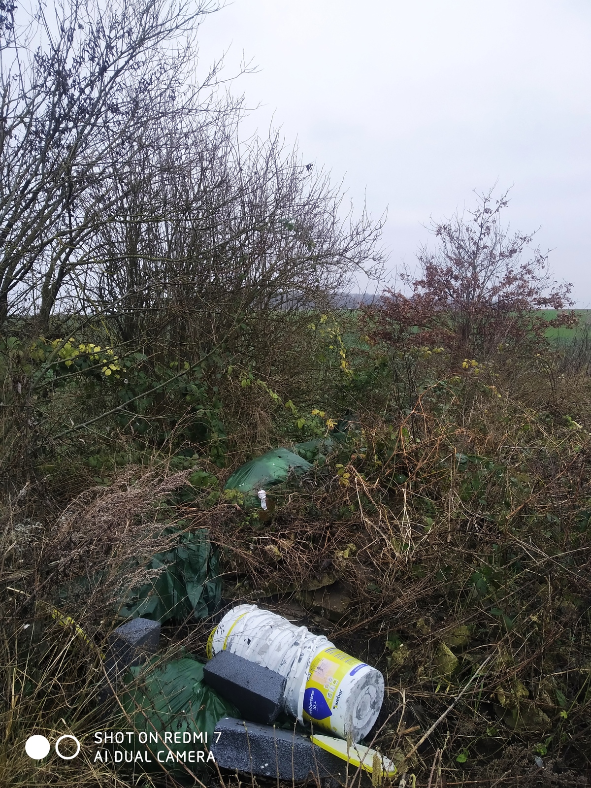 Dépôt sauvages (gravats, isolation polystyrène,...) à l'entrée de l'ancienne voie ferrée propriété du département de l'Aisne.