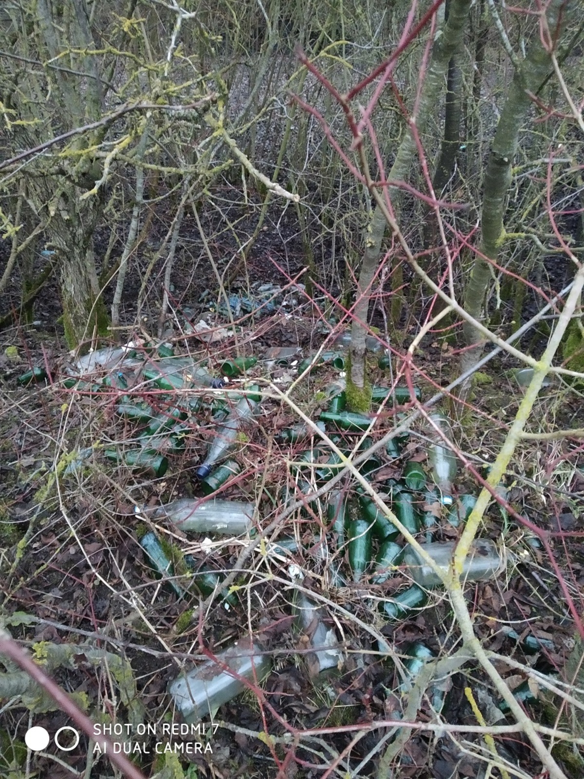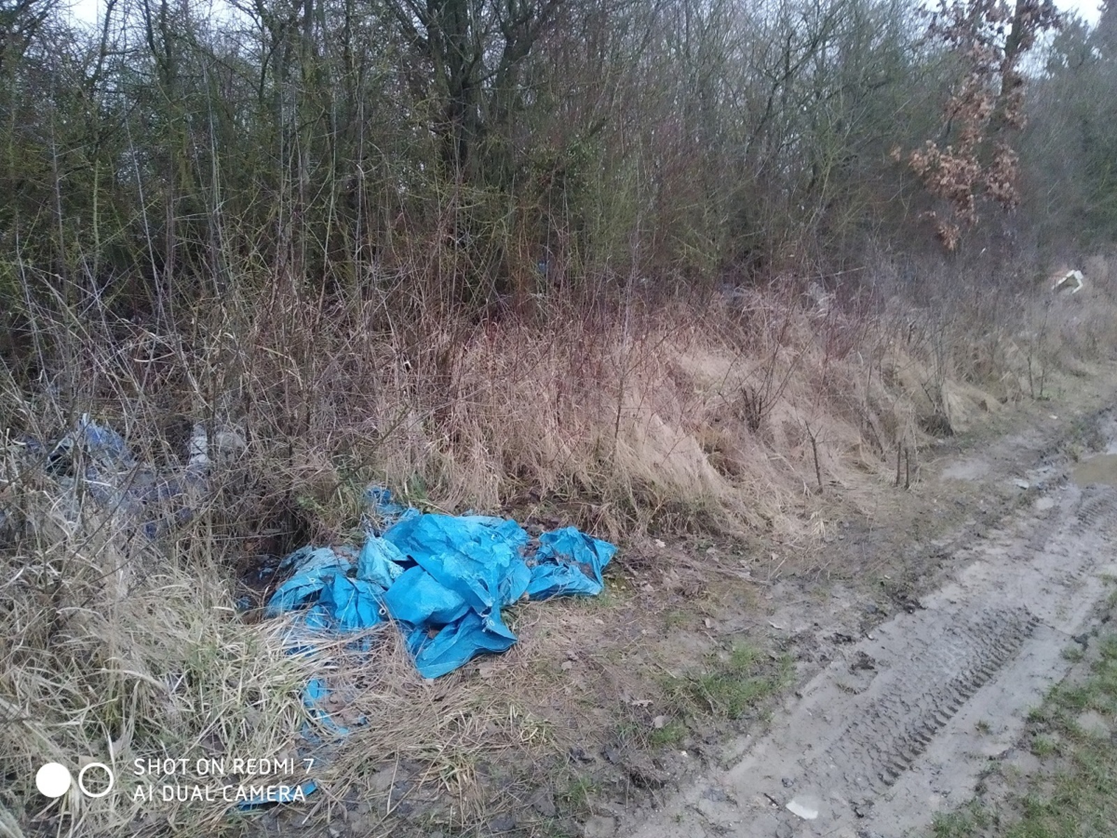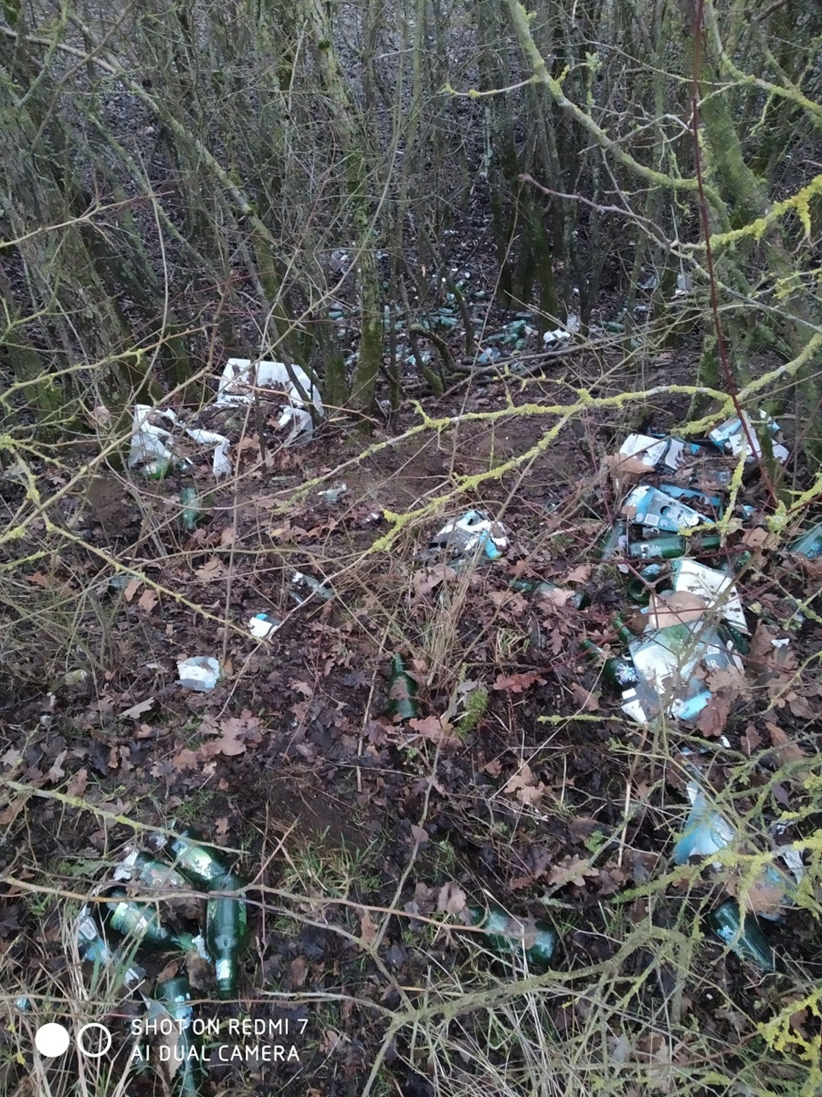 Dépôts de déchets sauvages (verres, plastiques, gravats, ...) sur plus de 500m de longueur le long de l'ancienne voie ferrée propriété du département de l'Aisne et trame verte dans un paysage de grandes cultures.