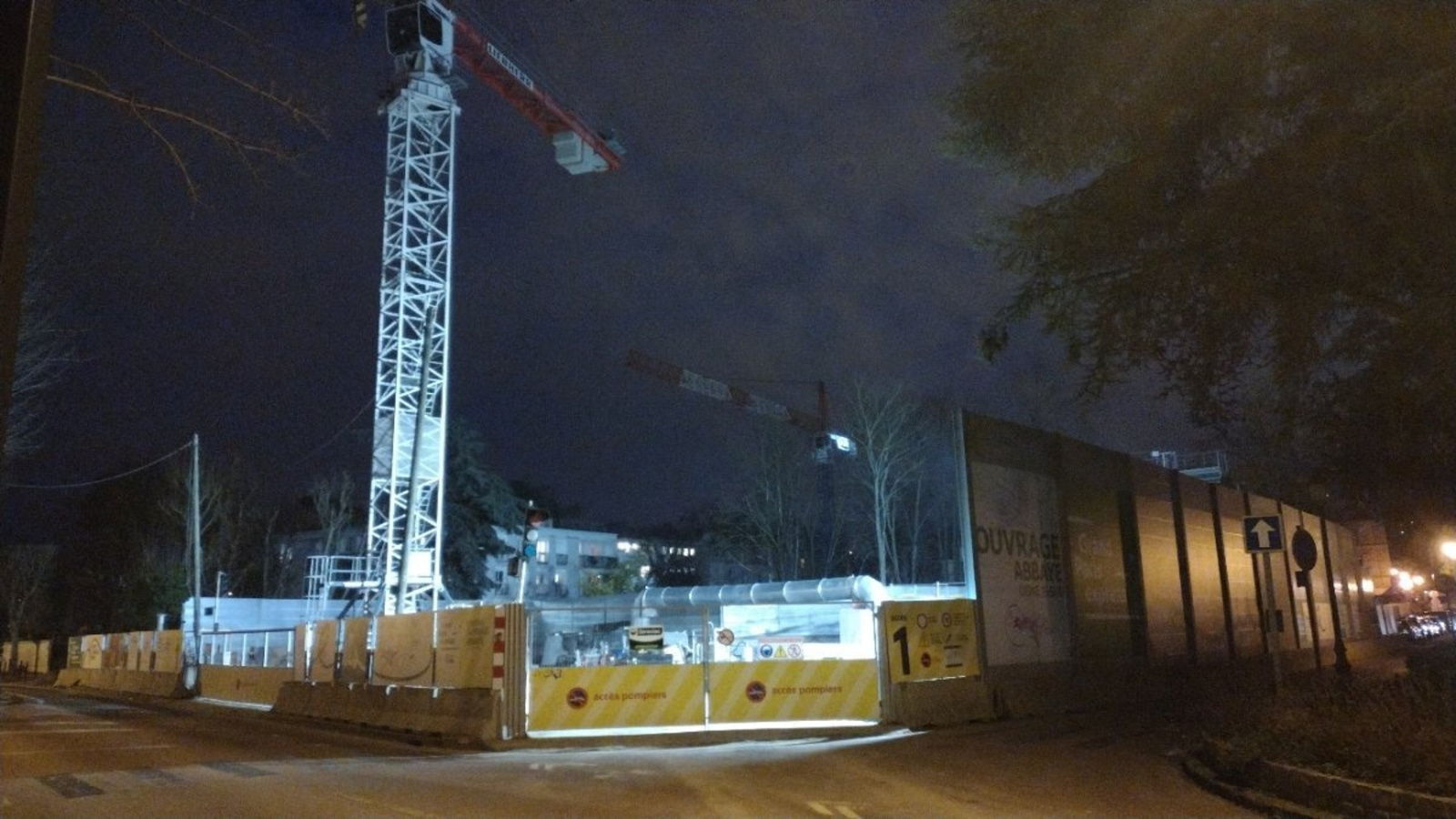 Un chantier ne respecte pas la réglementation en vigueur en laissant un éclairage important durant la nuit alors que l'activité a cessé.