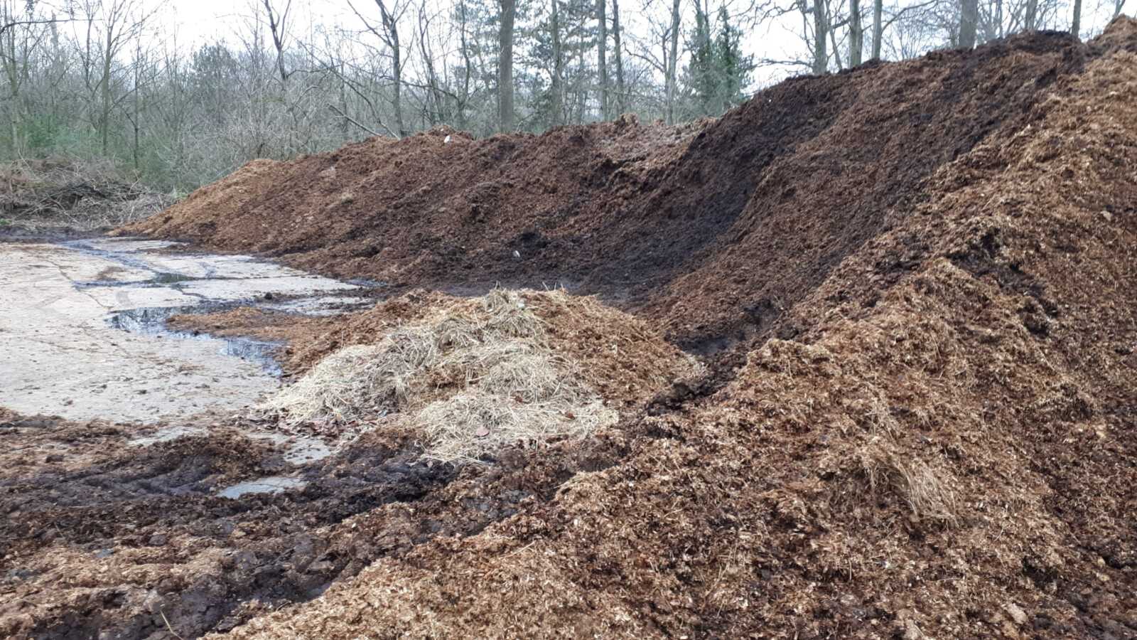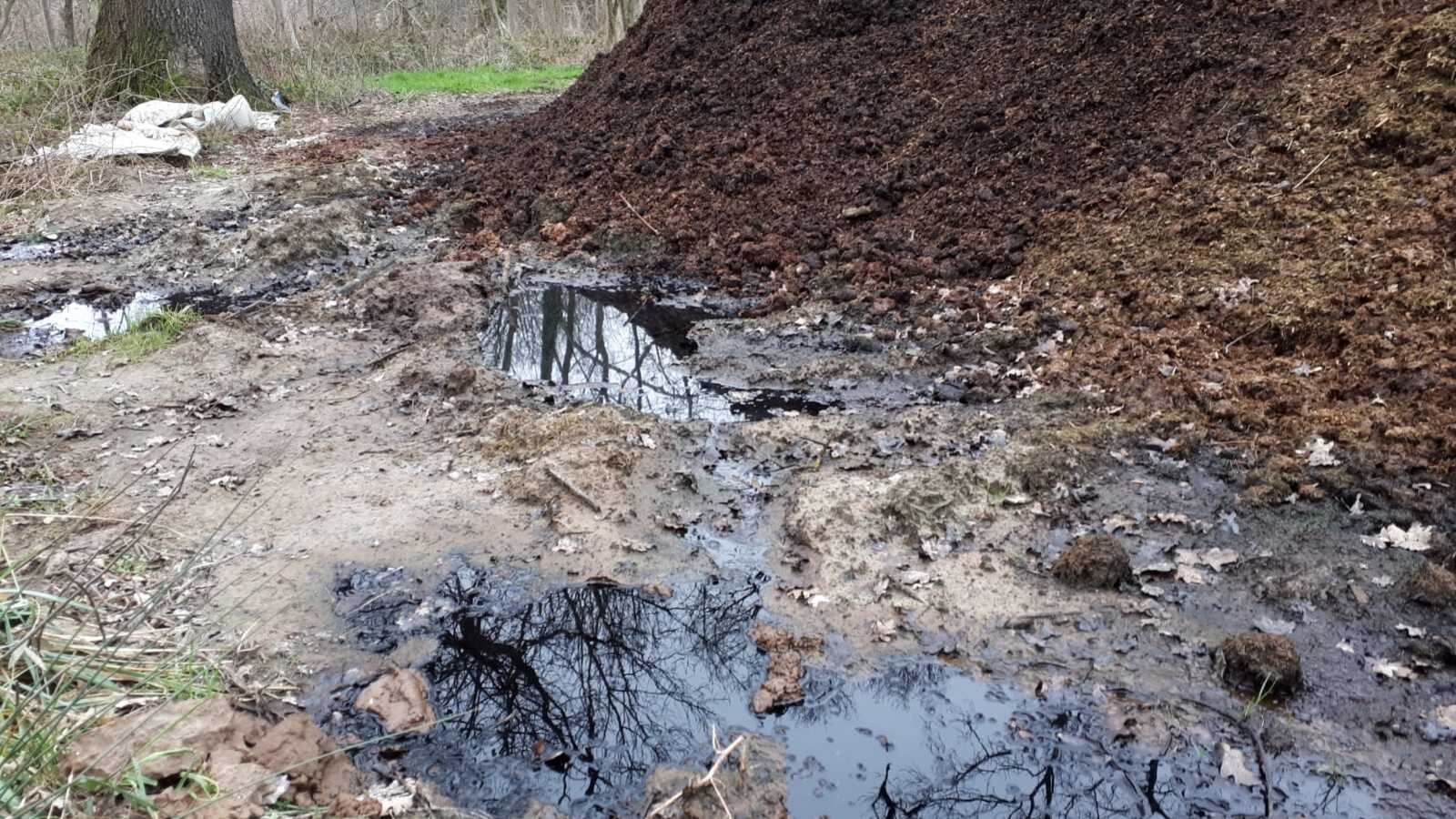 Un tas de fumier est entreposé en grande quantité le long d'un chemin en forêt sans respecter le règlement sanitaire départemental visant notamment a protéger les sols de la pollution au nitrate.