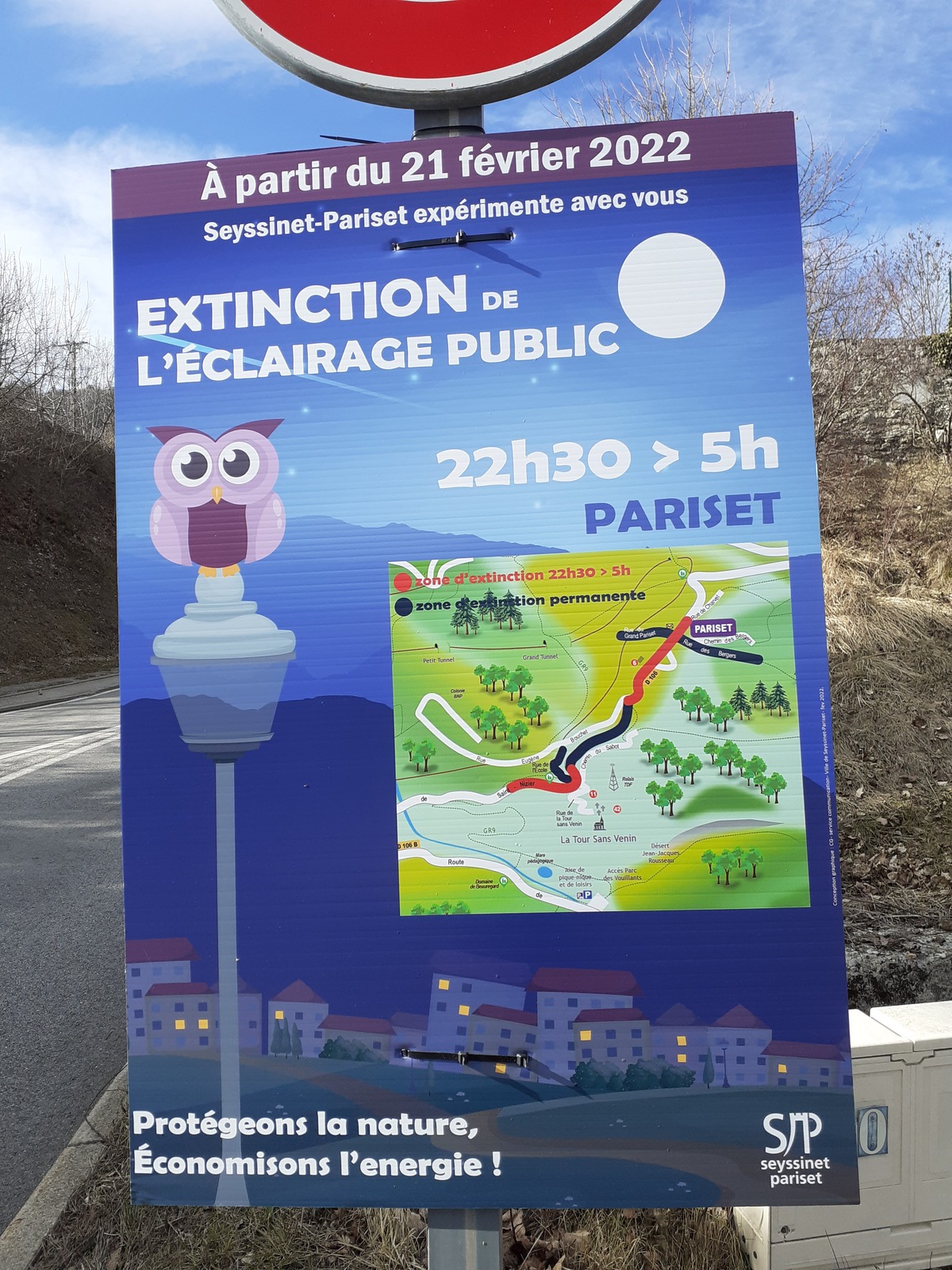 Extinction de l'eclairages public sur Pariset et le village de 22 h 30 à 5 h.
